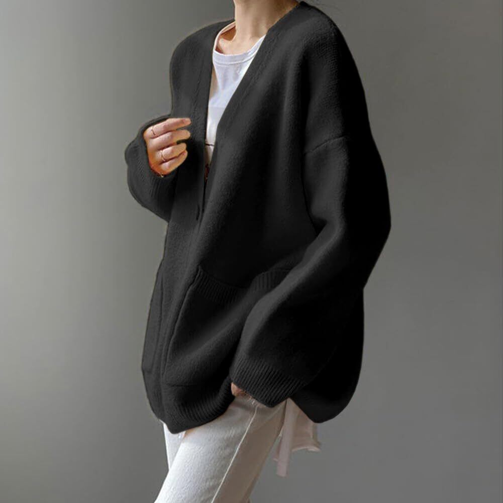 [Bidason] ニット カーディガン レディース Vネック トップス アウター 長袖 寒さ対策 前開きボタン ポケット 柔か 暖かい 羽織 伸縮性 ゆる感 ミディアム丈 普段着 通勤 通学 秋 冬 春
