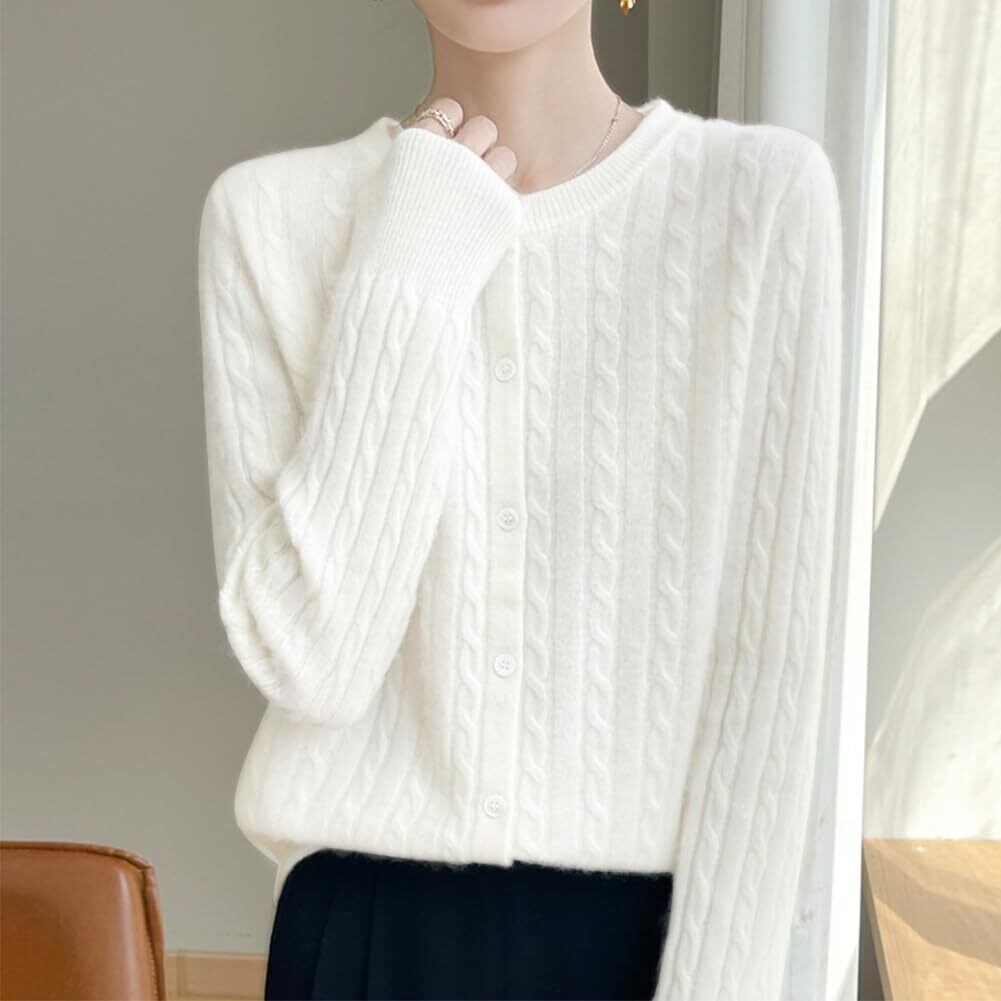 【2022最新】[Bidason] カーディガン レディース 長袖 ニット トップス ラウンドネック ケーブル編み きれいめ 可愛い 柔らか 暖かい 伸縮性 前開きボタン セーター シンプル 普段着 通勤 通学 秋 春
