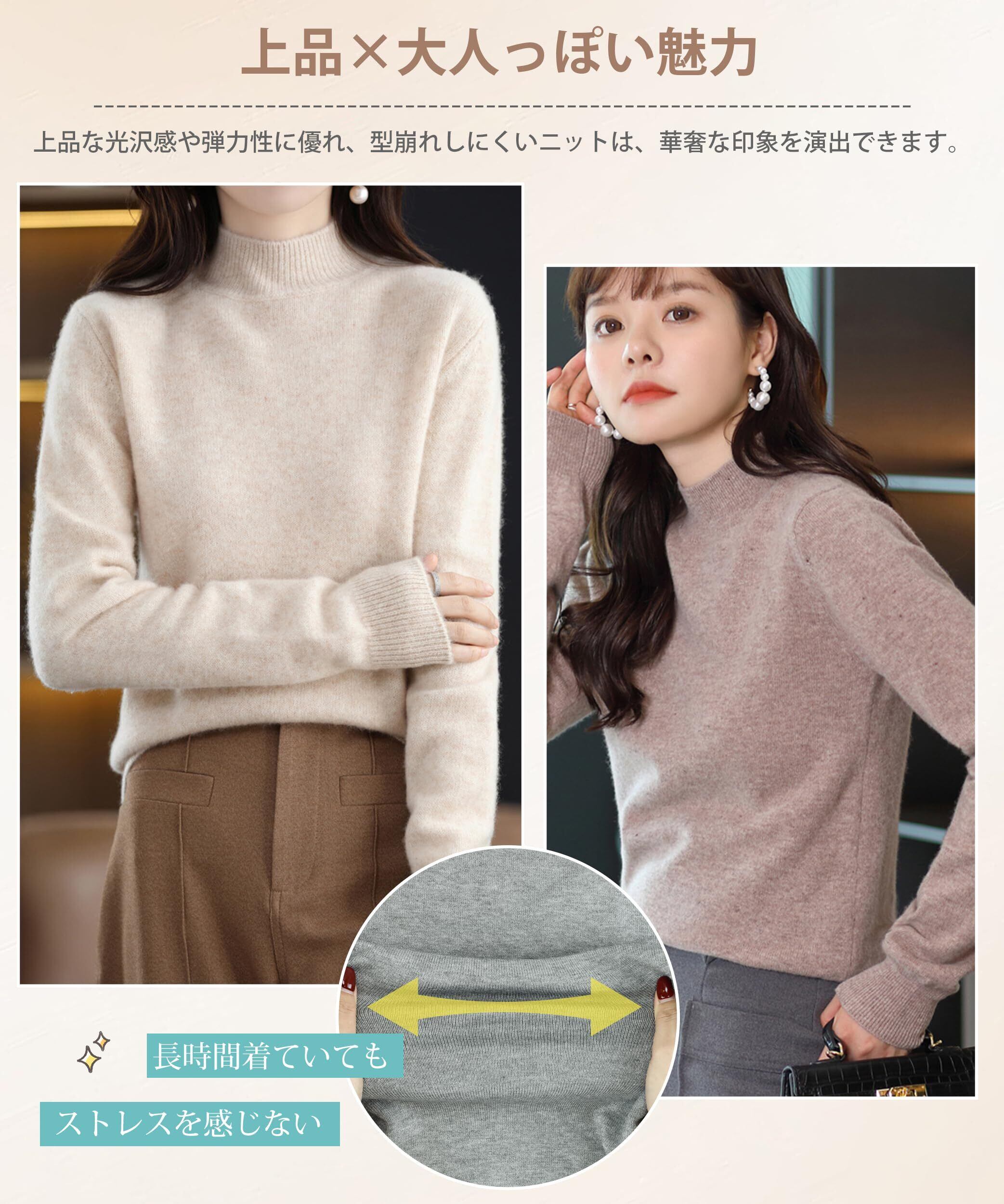 [MOWO] ニット トップス レディース 秋冬 【暖かいハイネック・着痩せマジック】【雲のように軽やかで柔らかい】 無地 ストレッチ セーター インナー 長袖 カジュアル シンプル ニットソー カットソー 春