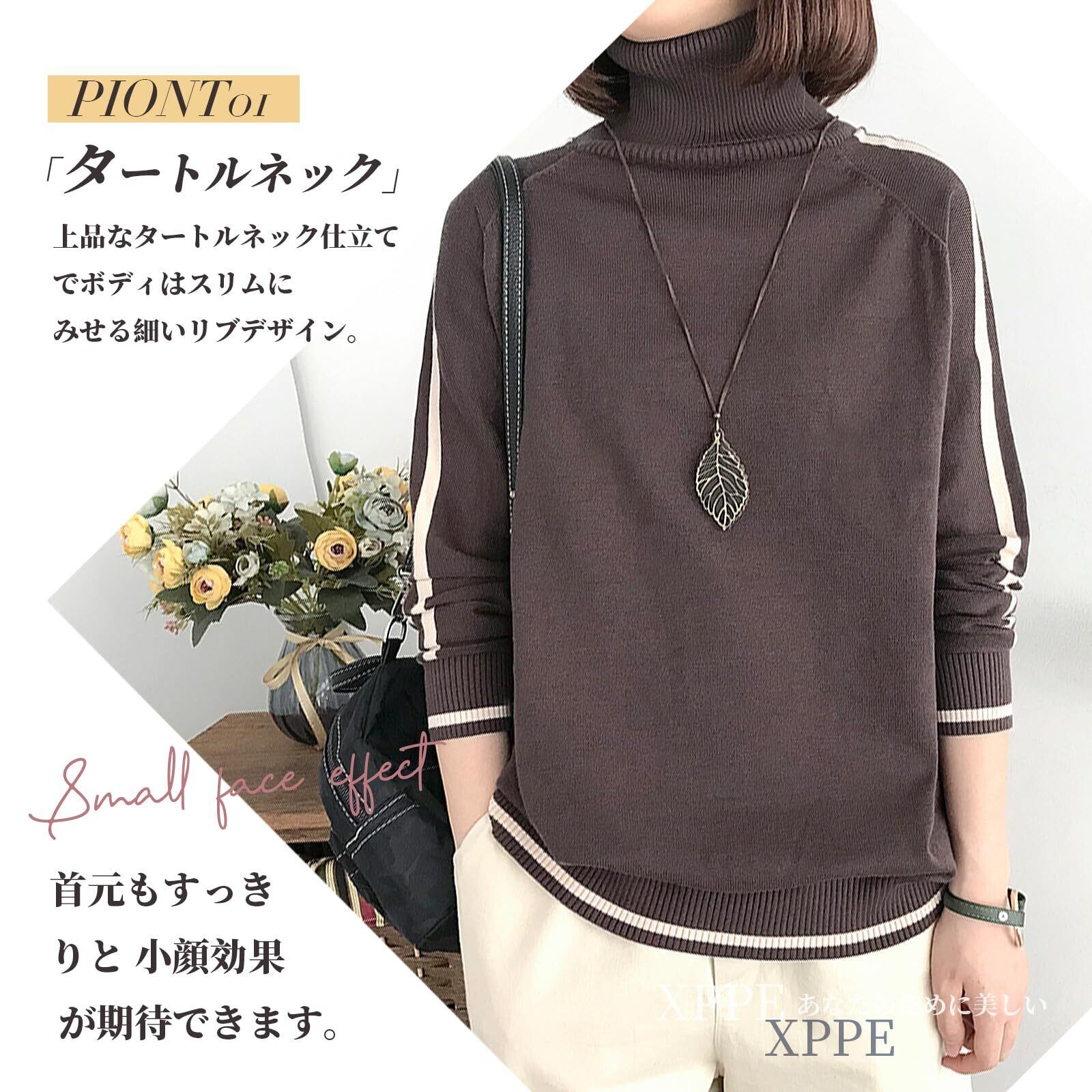 [xppe] レディース セーター ニット ハイネック リブ タートルネック 暖かい トップス おしゃれ カジュアル お出掛け 大人 シンプル 通勤 長袖 着痩せ 柔らかい ゆったり ブラック 無地 春秋冬