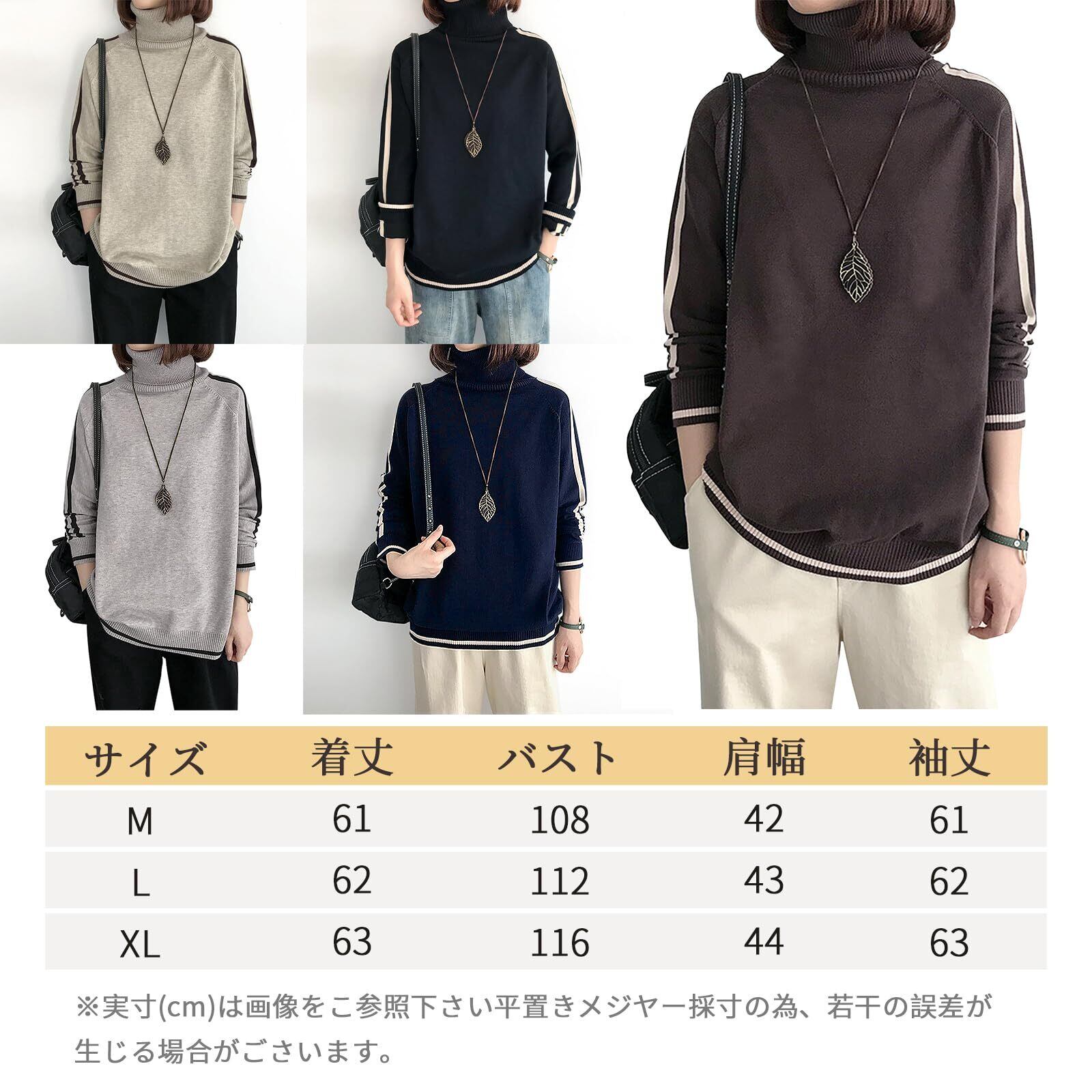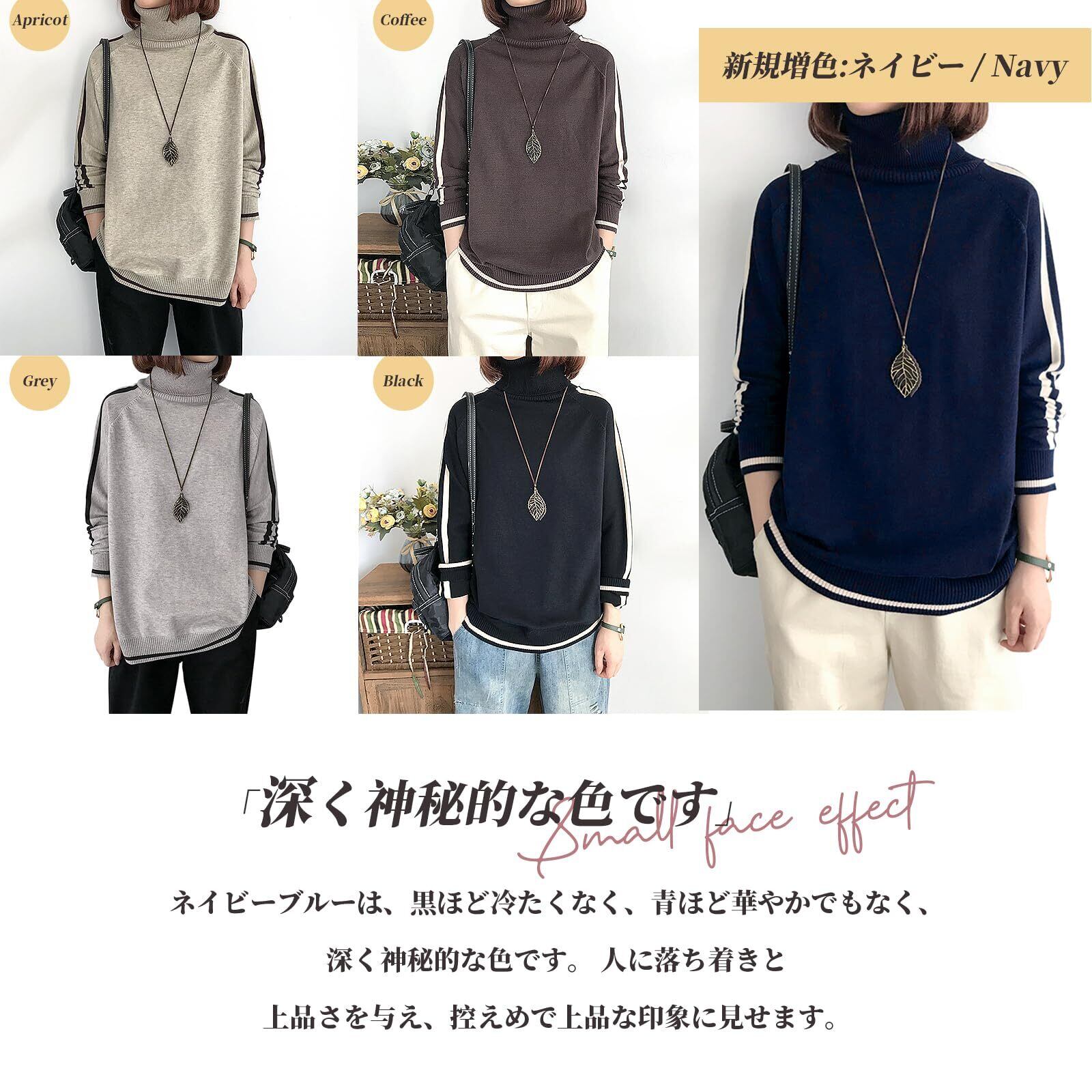 【程よくデザインされた定番のセーター】プルオーバーセーターは体に優しくフィットし、細見せ効果が高いです。後ろ姿もスッキリと魅せてくれます!タートルネックで、首元もすっきりと小顔効果が期待できます。