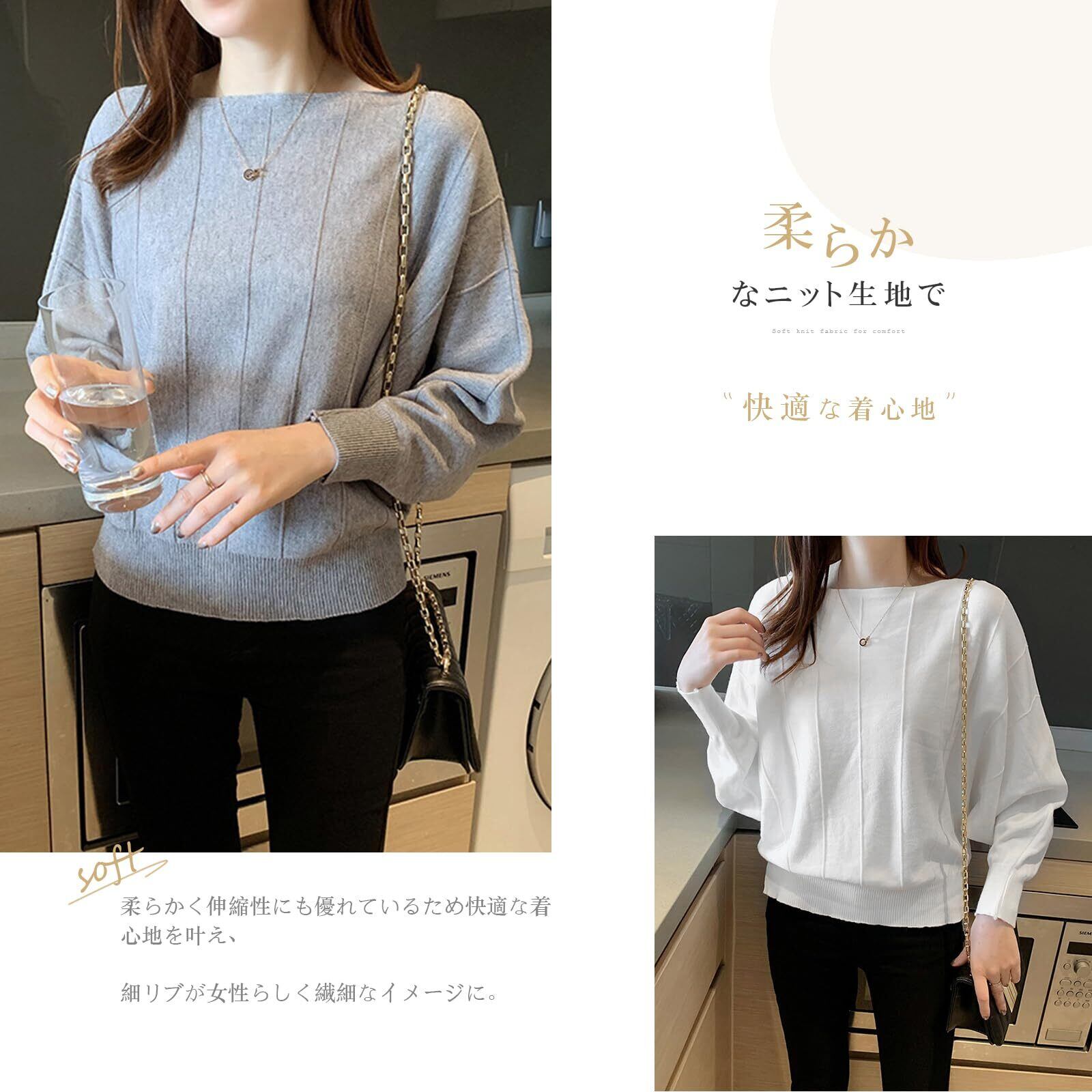 [MEME XTRA] ニット セーター レディース 長袖 ドルマンスリーブ ボートネック 無地 リブ ストレッチ ゆったり 大きいサイズ 着瘦せ ストレッチ トップス 大人 おしゃれ カジュアル オフィス お出かけ 通学 春 秋