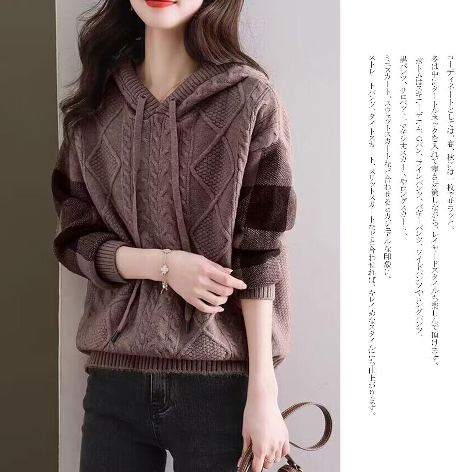 【新春セール】[RoyzTocz] セーター レディース ニットトップス カットソー フード付き パーカー ゆったり 体型カバー 保温 長袖 上品 おしゃれ 可愛い 着痩せ 可愛い カジュアル リブ トップス アウター 通勤 秋 冬