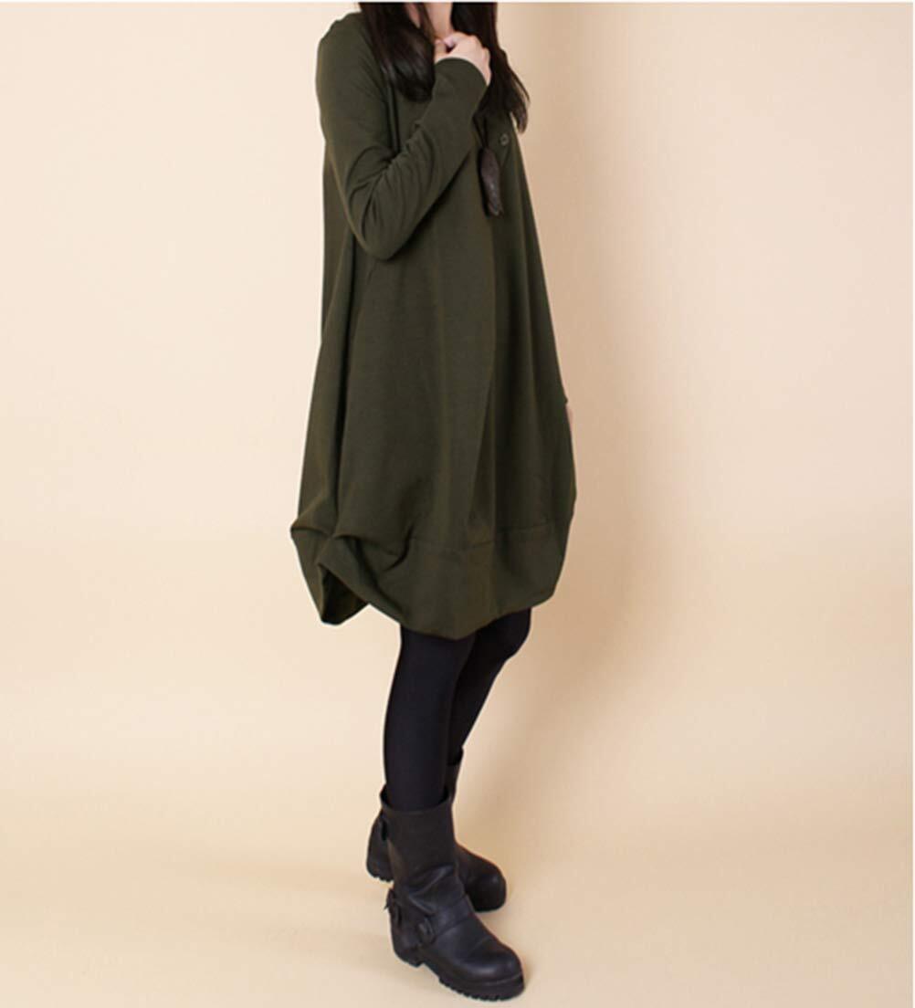 [INNIFER]レディース ワンピース シャツワンピース コットン 膝丈 無地 長袖 秋冬 体型カバー シンプル ゆったり Aライン 森ガール チュニック 可愛い 入園式 結婚式 お出かけ