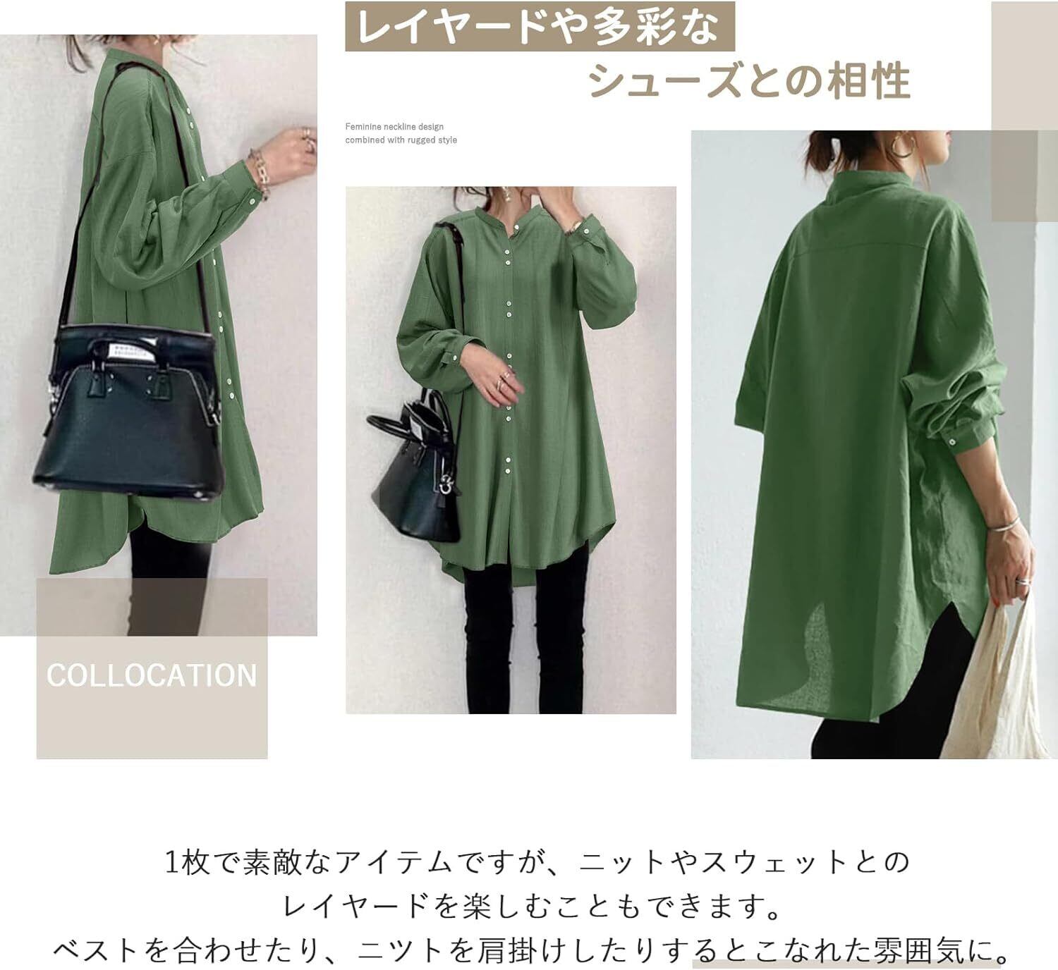 【新着商品】[Gfuracefuliayer] チュニック シャツ レディース - 長袖 前開きシャツ ブラウス トップス 薄手 体型カバー ゆったり 大人 シンプル おしゃれ 大きいサイズ 着痩せ クラシックフ 通勤 カジュアル 無地 春夏秋冬