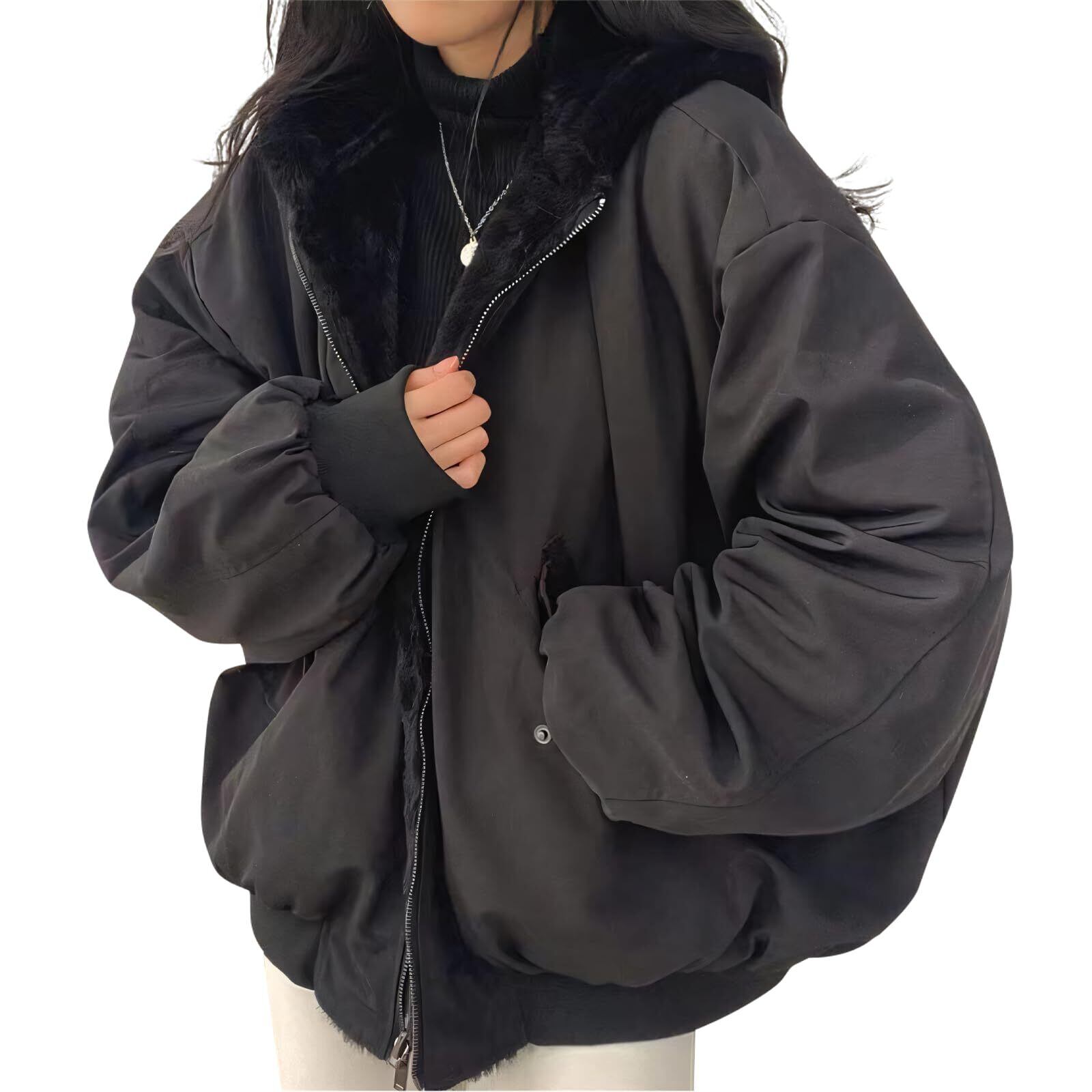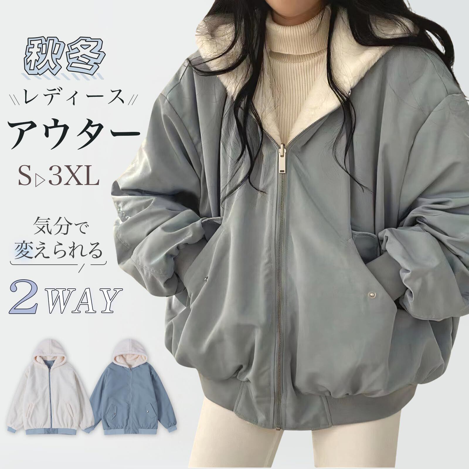 [Kayiyasu] アウター レディース リバーシブル ボアブルゾン 2way ボアジャケット 秋冬 ゆったり 暖かい 柔らかい カジュアル 通勤 通学 S-XL