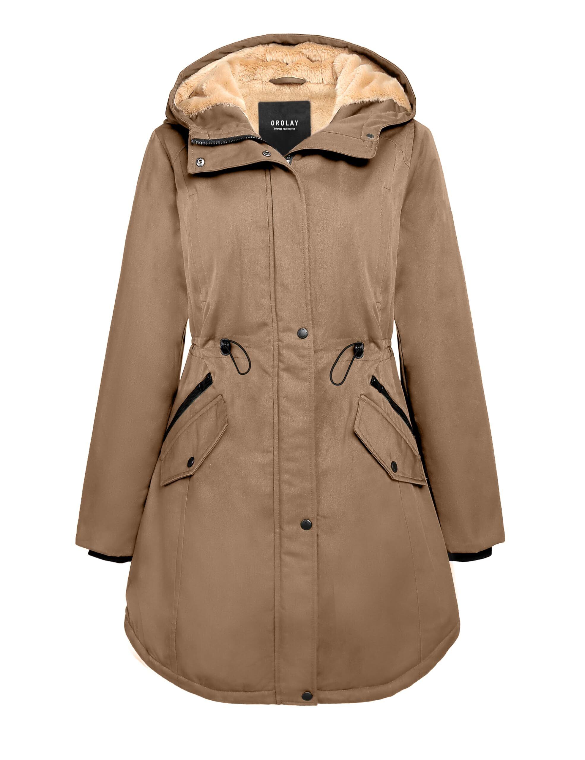 【特価セール】[Orolay] モッズコート レディース 中綿ジャケット ロング アウター ミリタリー ボア 裏側フリース フード付き 撥水 防寒 防風 耐久 膝丈 カジュアル 通勤 通学 秋 冬