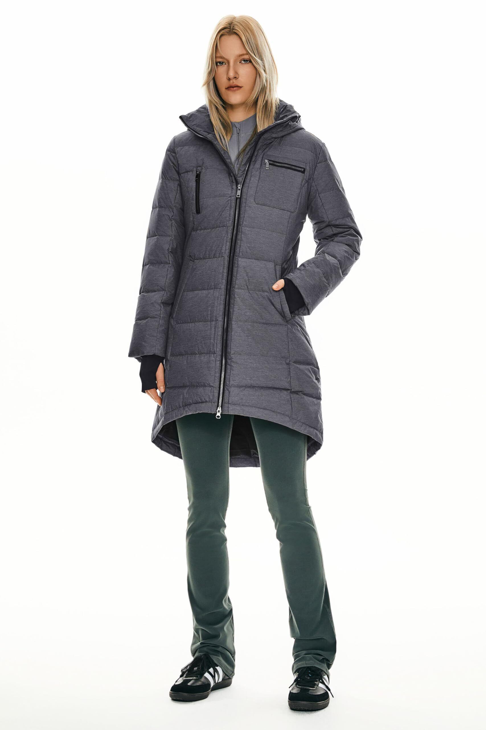 [Orolay] ダウンジャケット レディース ダウンコート パファージャケット アウトドア 防寒コート 膝丈 フード ポケット 厚手 防寒 防風 撥水 通学 通勤 春秋冬