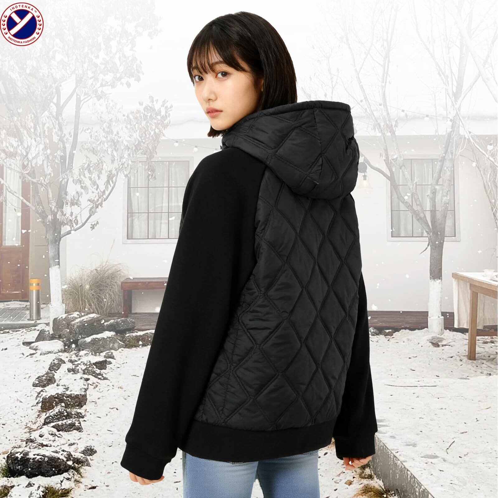 【特価商品】[inotenka] コート レディース キルティング ショート丈 アウター フード付き 中綿ジャケット 防寒 軽量 暖かい 中綿コート 無地 カジュアル 通勤 秋冬 S-XL