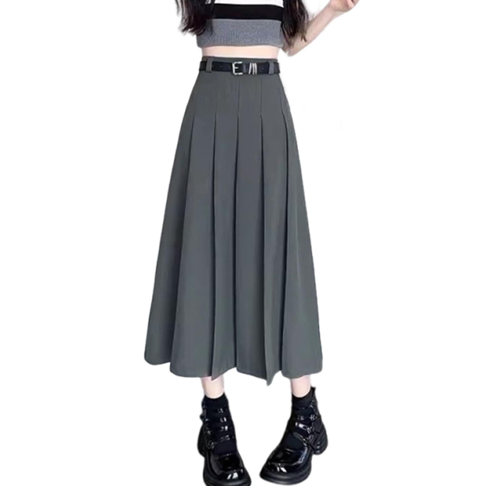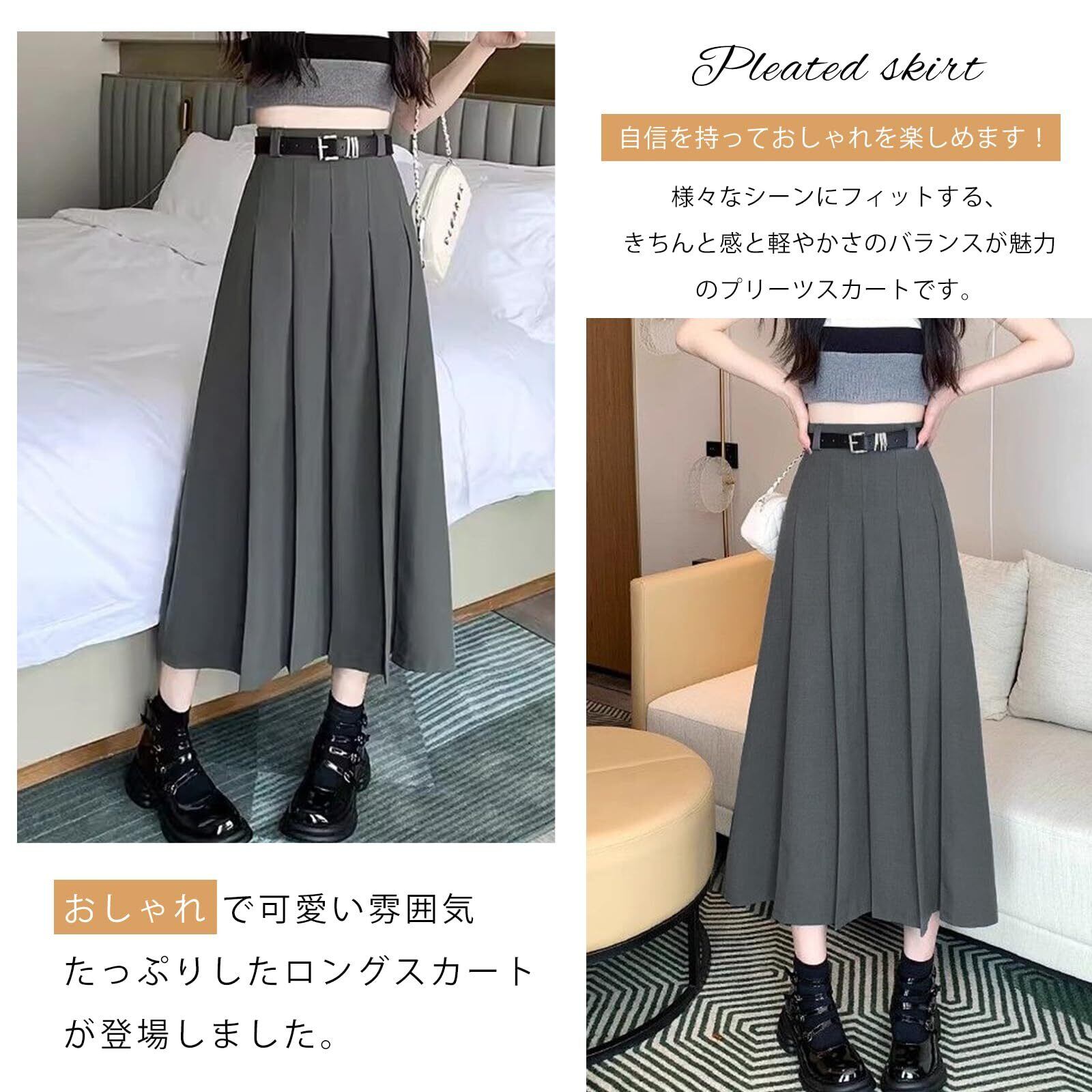 [MzcoYmm] プリーツスカート レディース ロング ベルト付き フレアスカート ハイウエスト aライン スーツ ボトムス 制服 無地 着痩せ 普段着 夏 春 秋