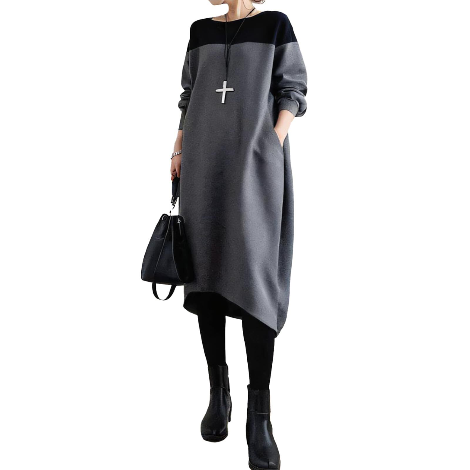 [inotenka] ロングワンピース レディース ロング 切り替え 長袖 ゆったり プリーツ ポケット付き 着痩せ 体型カバー 通勤 部屋着 春秋冬