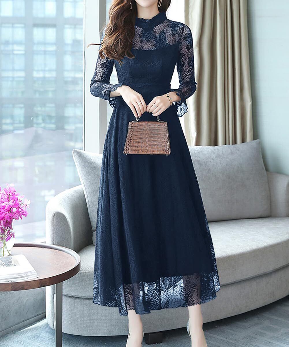 ●贅沢にあしらわれた紅葉形がシーズンらしく、上品な揺れ感が歩く姿を美しく彩るマキシワンピースがエレガントに新登場しました。計算された裁断で着痩せ効果が抜群のドレス。コードレースのシアー感がつややかな大人女子の魅力を上品に醸し出して、落ち感があって美しいフレアレースワンピース。ドレープ性ある裾で自然なフリルになっておしゃれの決まりになるポイント。足首の細いところだけを見せることで脚全体をほっそりと見えます。