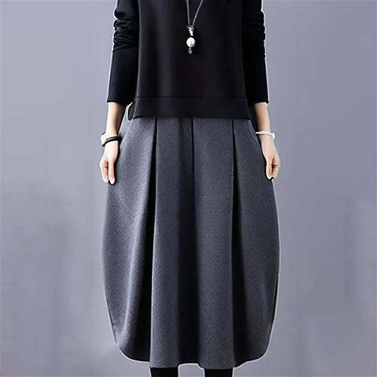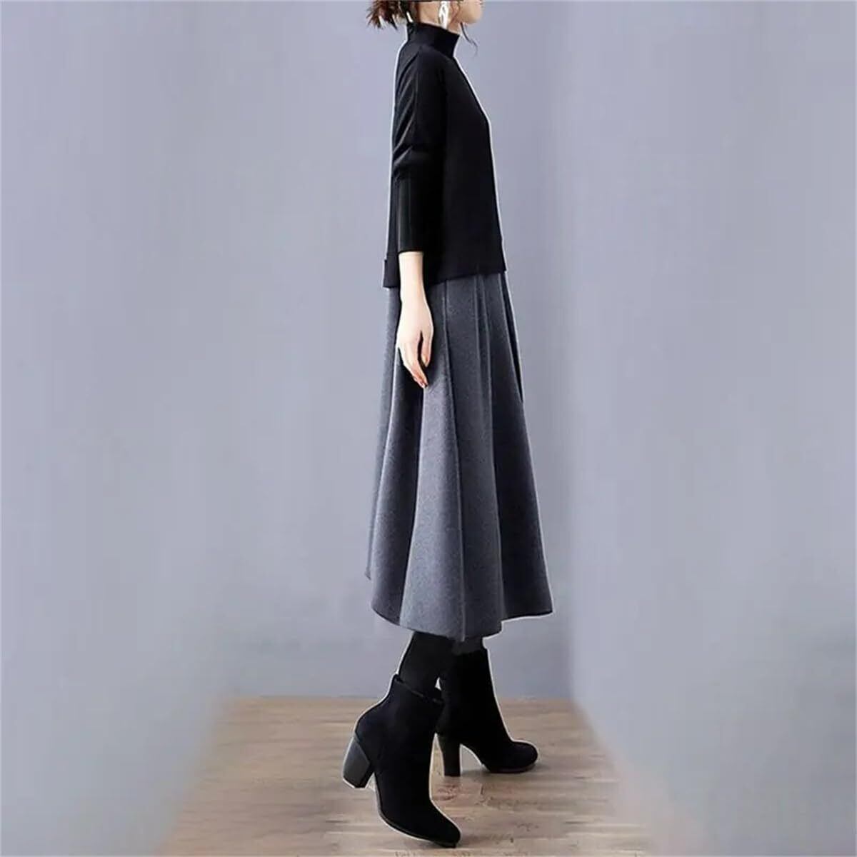 【新着商品】[YUANYUAN] ドンキングワンピース レディース キャザーワンピース 冬ドレス 膝下丈 春服 秋服 冬服 長袖 カラーマッチング カジュアル ゆったり おしゃれ 大人 可愛い 暖かい キレイめ エレガント 切り替え 二次会 日常着 春秋冬