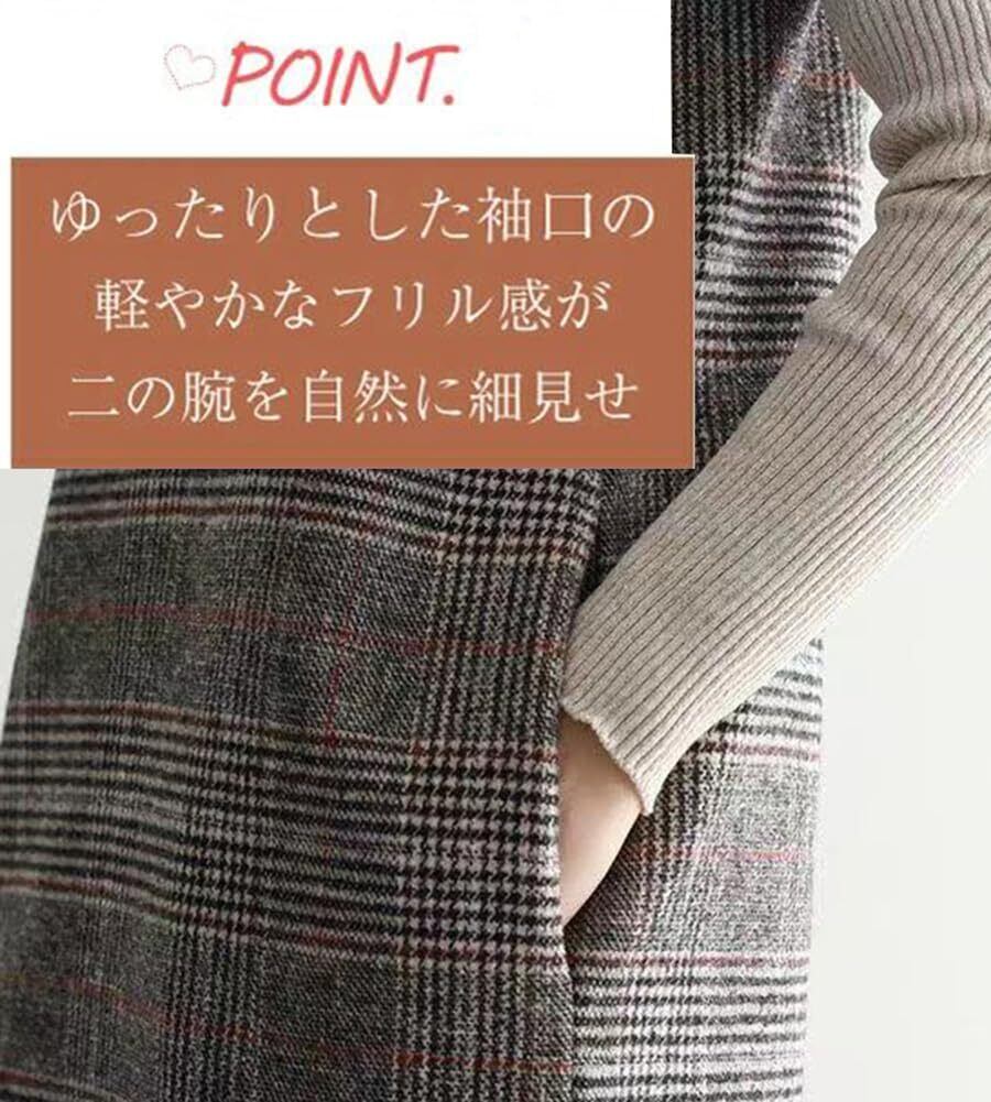 [Muzly] チェック柄 ジャンパースカート ワンピース レディース ロング丈 ミディアム丈 ノースリーブ Vネック 重ね着 レイヤード カジュアル フォーマル 秋 冬 春