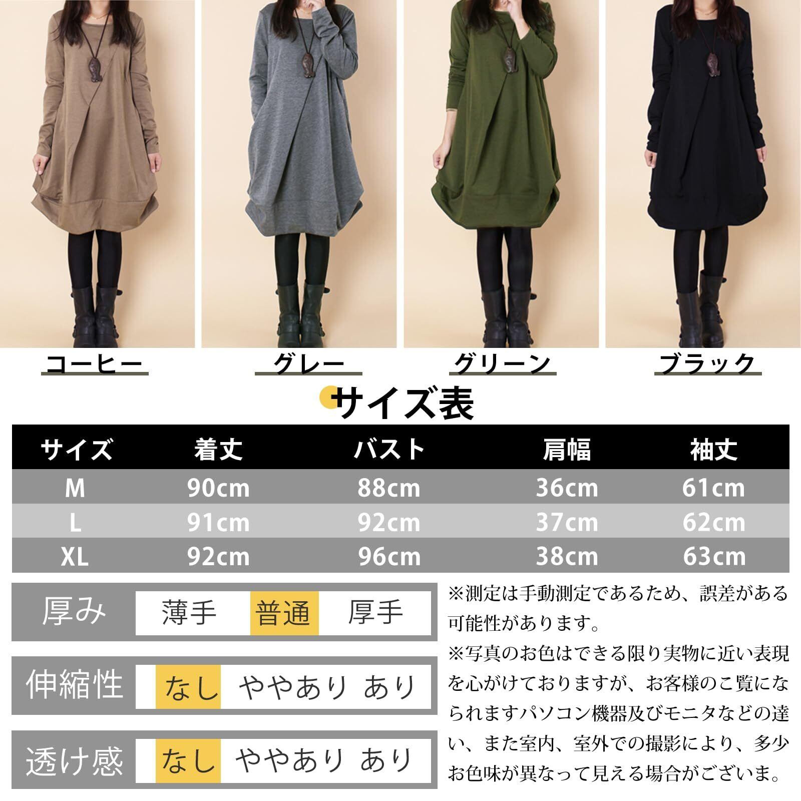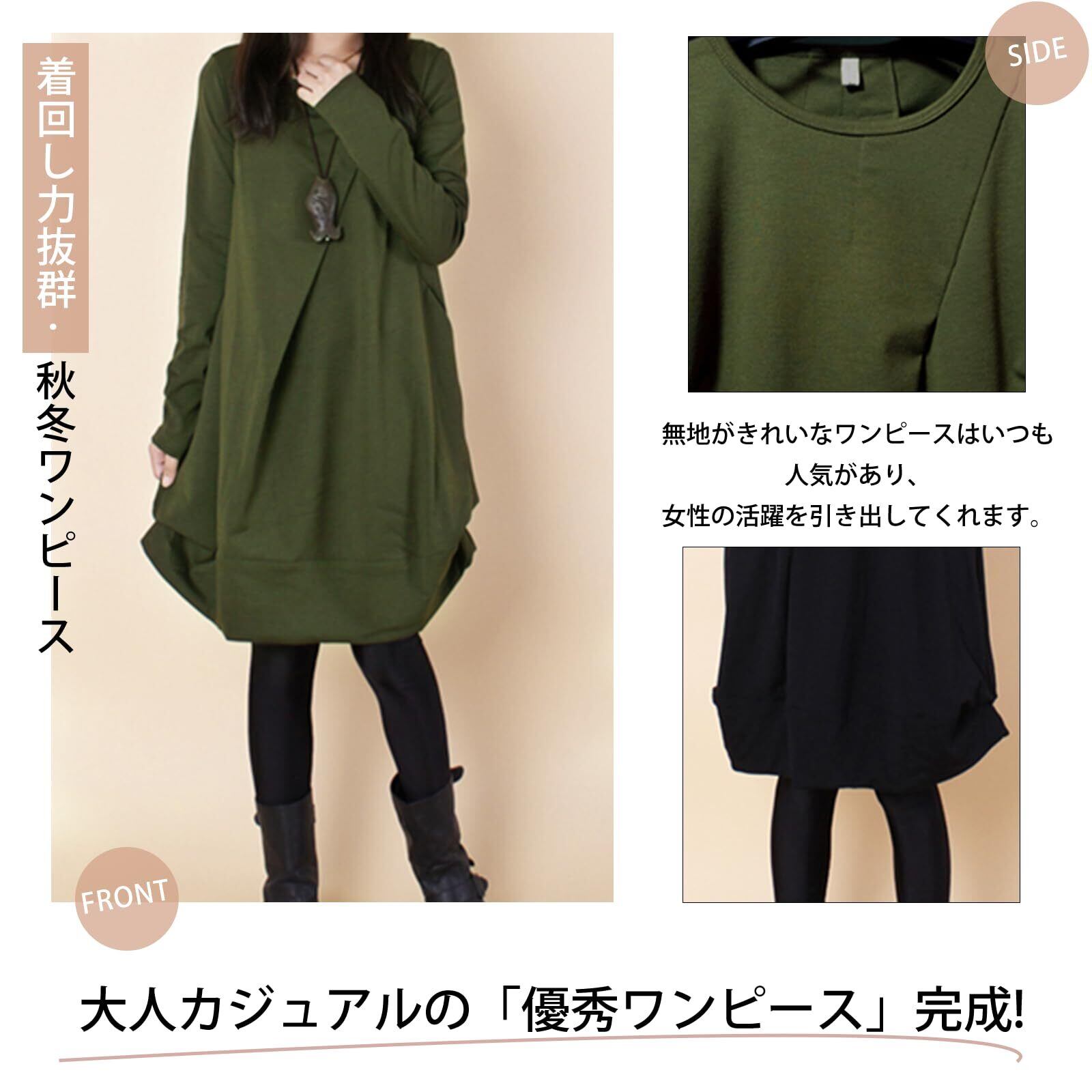 [WoauNuiHll] ワンピース レディース チュニック 長袖 ロングワンピース 膝丈 丸首 無地 大きいサイズ 体型カバー ゆったり ファッション 通勤 春 秋 冬