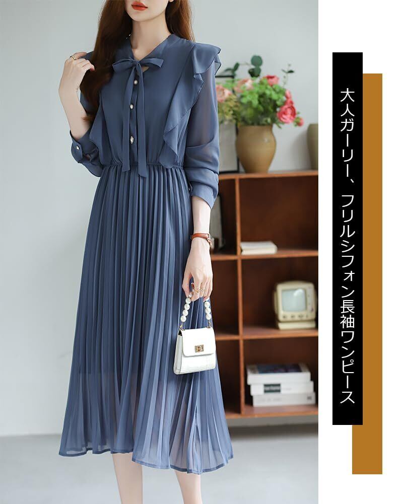 このワンピースのボウタイデザインは、クラシカルでありながらも現代的なスタイルを融合させています!ロング丈が上品さを添え、長袖は寒い季節でも安心して着用可能。シフォン特有の軽やかさが、動きやすく快適な着心地を実現。事務所やお出かけシーンでも、自信を持って着こなせること間違いなしです。