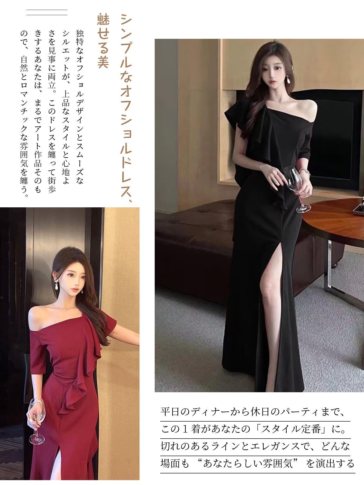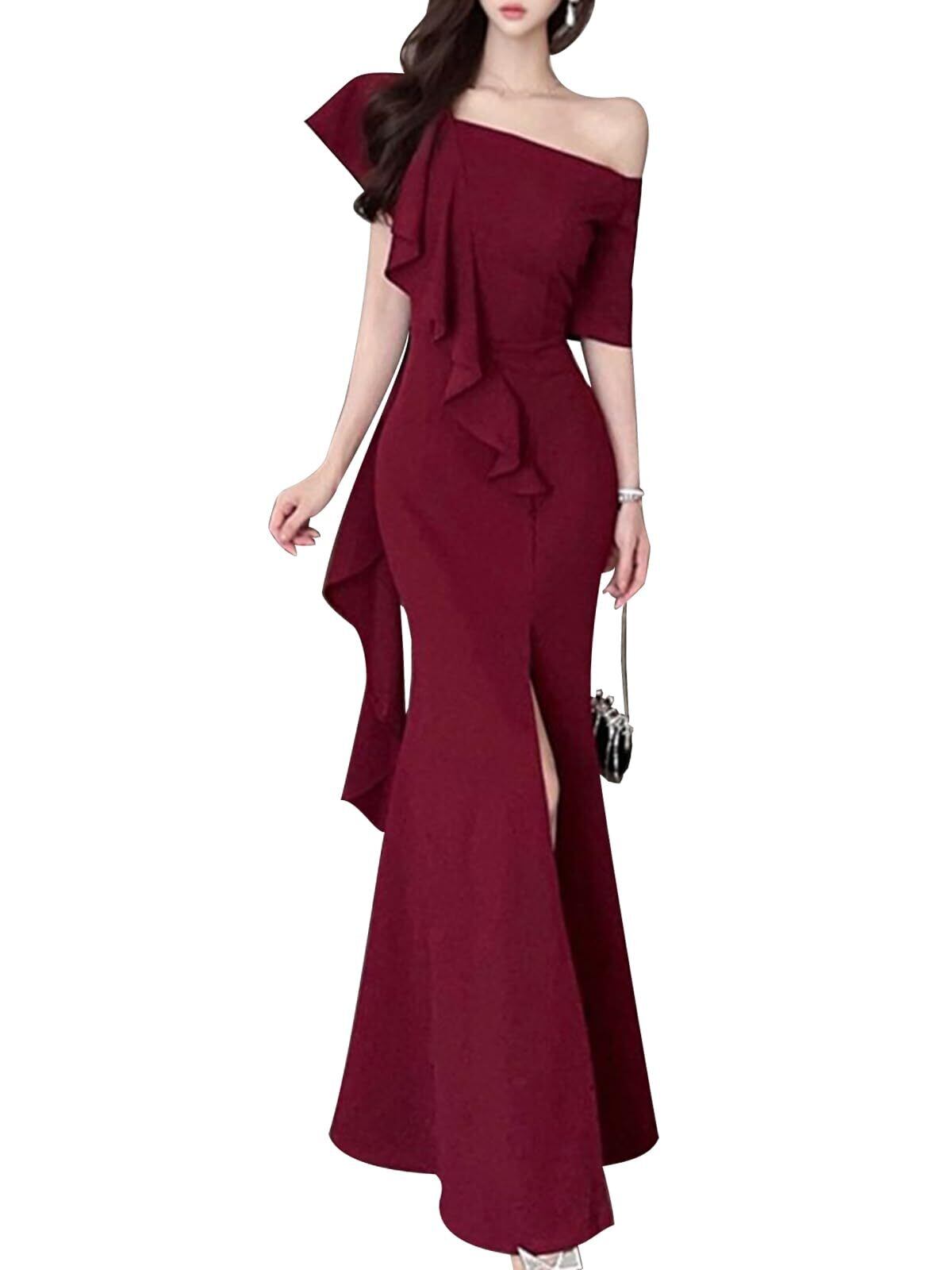 [BaiFuFen] キャバドレス ロングドレス パーティードレス ワンショルダー ラッフル ハイスリット マキシ マーメイドドレス 肩出し イベント 二次会 デート 発表会 演奏会 ファッション 上品