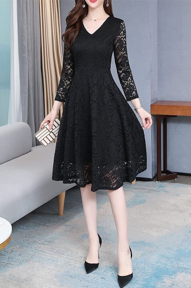 [Chubikime] ワンピース レディース 結婚式 ドレス パーティードレス 総レース 長袖 秋 冬 春 Aライン 裏地あり 着痩せ フォーマル お呼ばれ 二次会 きれいめ