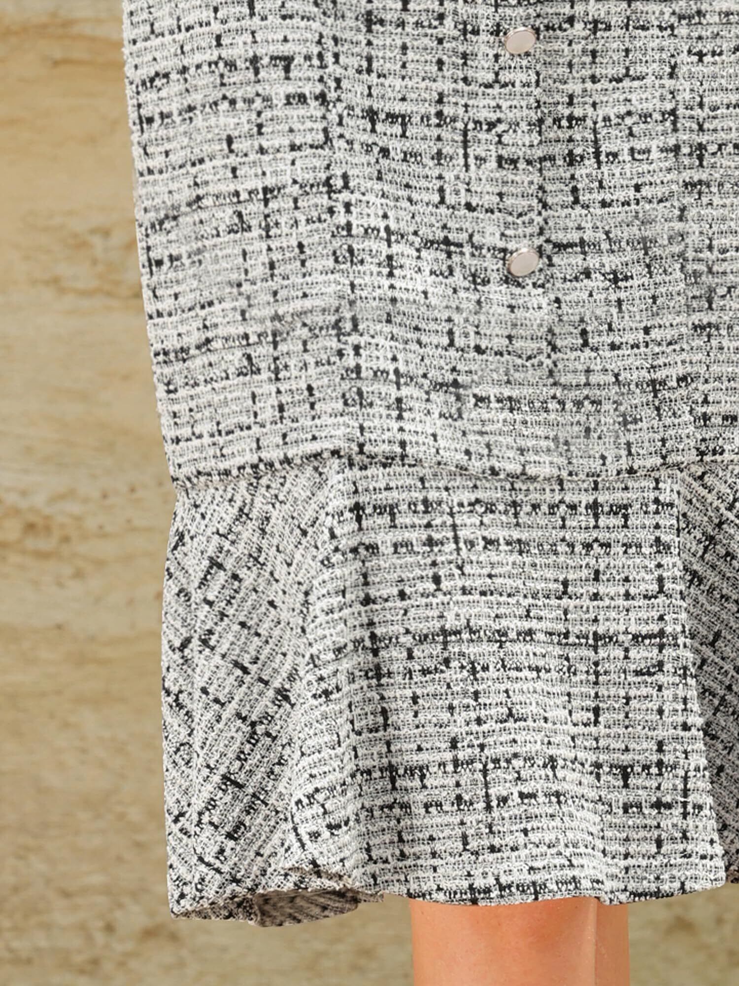 ツイード生地、V ネック、長袖、ボタン装飾、フロントポケット、半裏地、後ろジップ、フィッシュテール裾、ミディ丈が特徴の Hobemty のこのドレスを着て、プロフェッショナルでスタイリッシュな印象を保ちましょう。
