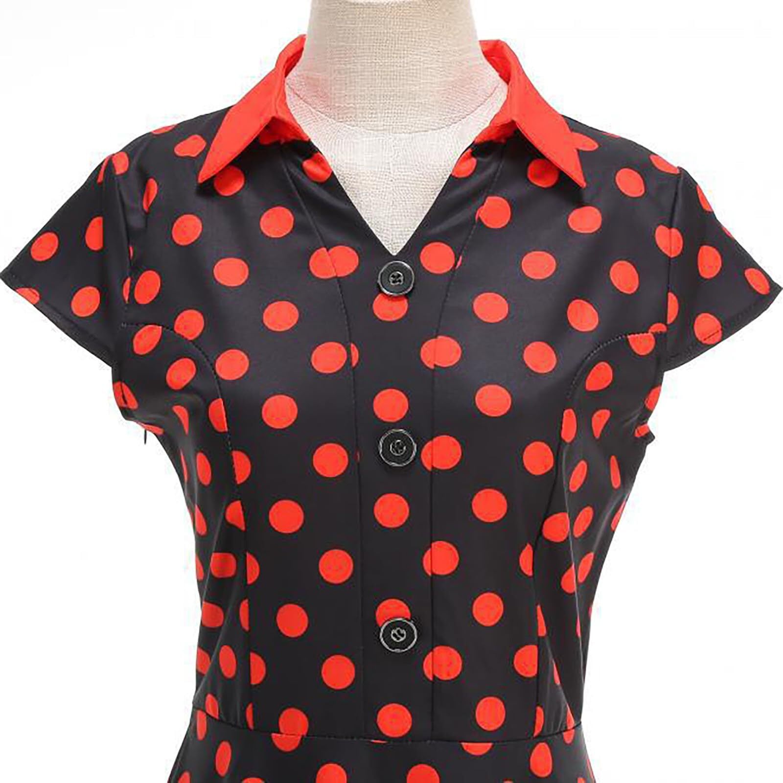【新着商品】[Povozer] レトロワンピース 1950Sロカビリー Vネック ベルト付け ドット柄 半袖 Aライン 水玉 パーティー 結婚式ドレス 二次会 お呼ばれ 発表会 誕生日 スイング フォマール カジュアル シンプル エレガント スイングドレス