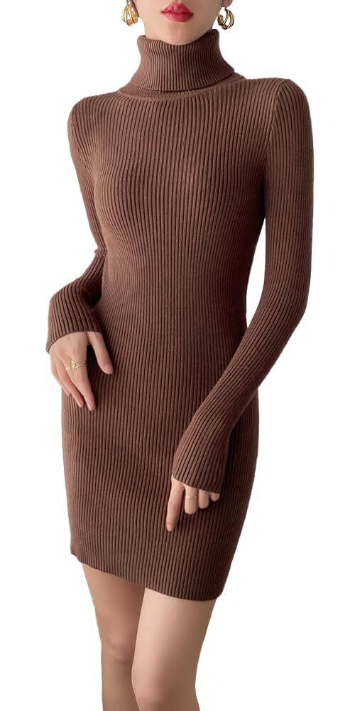 [Hanmall] ニットワンピース ミニ タートルネック 長袖 膝上 タイト セクシー レディース 無地 秋冬 ハイウエスト ワンピース