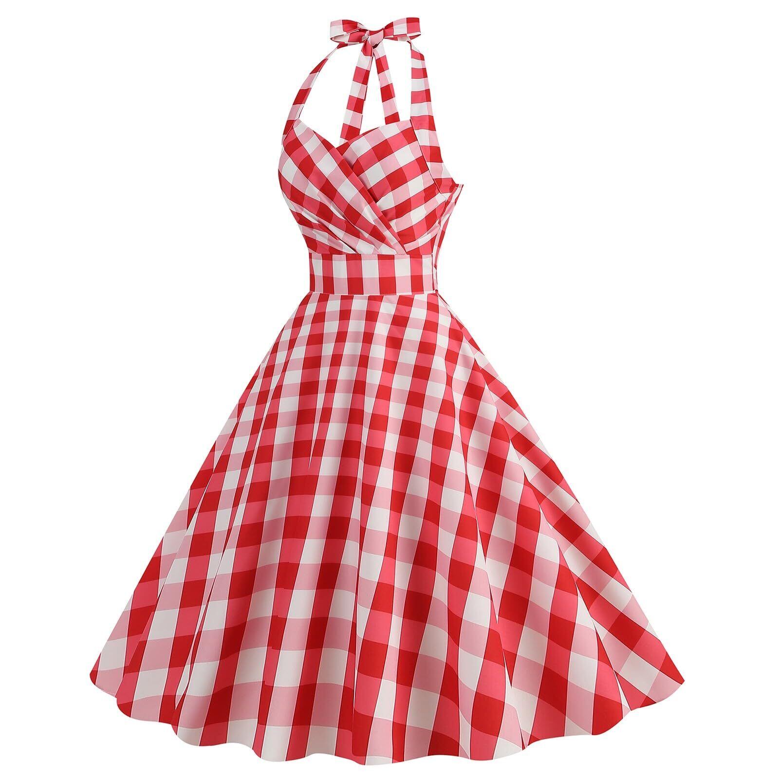 [Chenyoulan] 50年代 レトロワンピース レディース ロカビリードレス ホルターネック 結婚式ミディワンピース ビンテージ 水玉 カクテルドレス おしゃれ ファッション カジュアル 体型カバー 可愛い 二次会 お呼ばれ 演奏会 披露宴 発表会