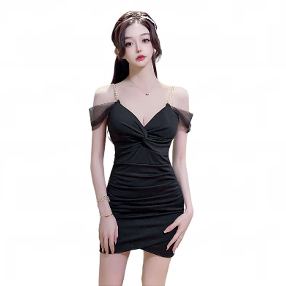 [SDSXZWG] レディース ワンピース キャバドレス デコルテVネックプリーツスカート ノースリーブミニレースバッグヒップ タイト不規則ドレス セクシー美女ナイトクラブ デート