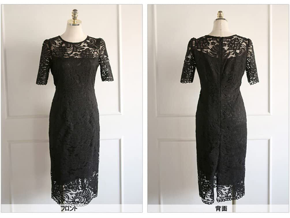 [ZHENGTU] レディース 総レース ワンピース クラブドレス ハイウエスト タイトドレス ウエストマーク スリット シースルー シアー ひざ丈 エレガント OL 通勤 オフィス パーティー
