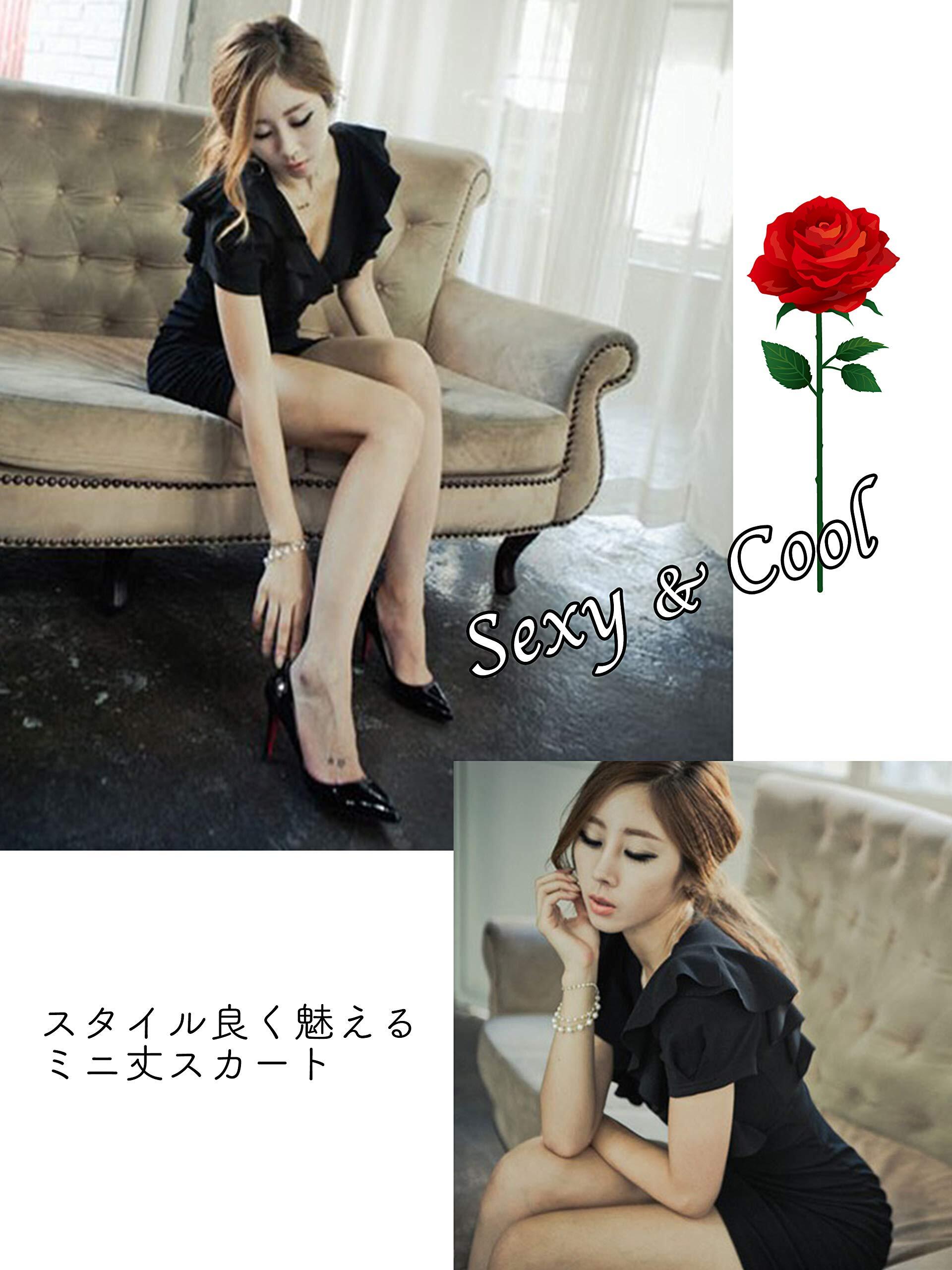 袖のフレアが二の腕を華奢に体型カバー、ハイウエスト切り替えとミニ丈のスカートがスタイル良く魅せる! 深めのVネックが首元・デコルトを綺麗に、カシュクールのドレープがバストをふんわりと包み、ミニ丈スカートのサイドギャザーが動きやすい! 選べるブラック&レッドで勝負で映えるドレスワンピース。