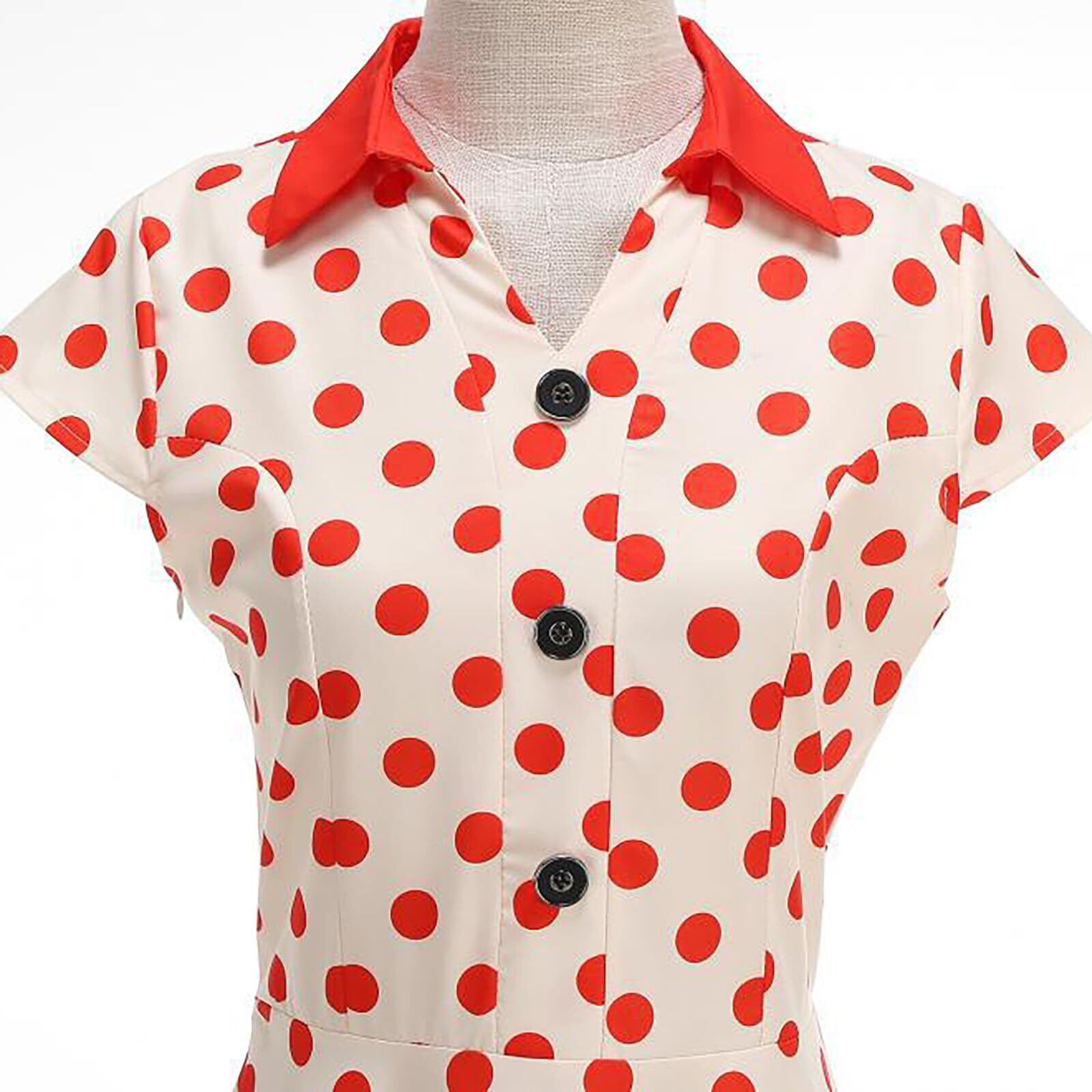 【特価セール】スイングワンピース レディース 膝丈 ワンピース 丸首 レトロ 50年代 半袖 Aライン洋服 かわいい 水玉柄 気高く雅やか ドレス 二次会 パーティー 舞踏会 発表会