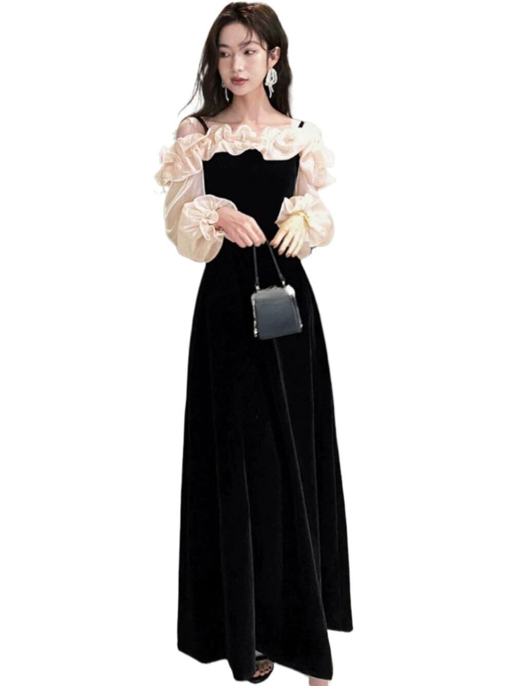 【新着商品】[kzzkoo] お呼ばれドレス 結婚式 パーティードレス 韓国 20代 オケージョンドレス 結婚式ドレスワンピース お呼ばれドレス 二次会ドレス 成人式ドレス 同窓会ドレス かっこいい ロングドレス 袖付きドレス