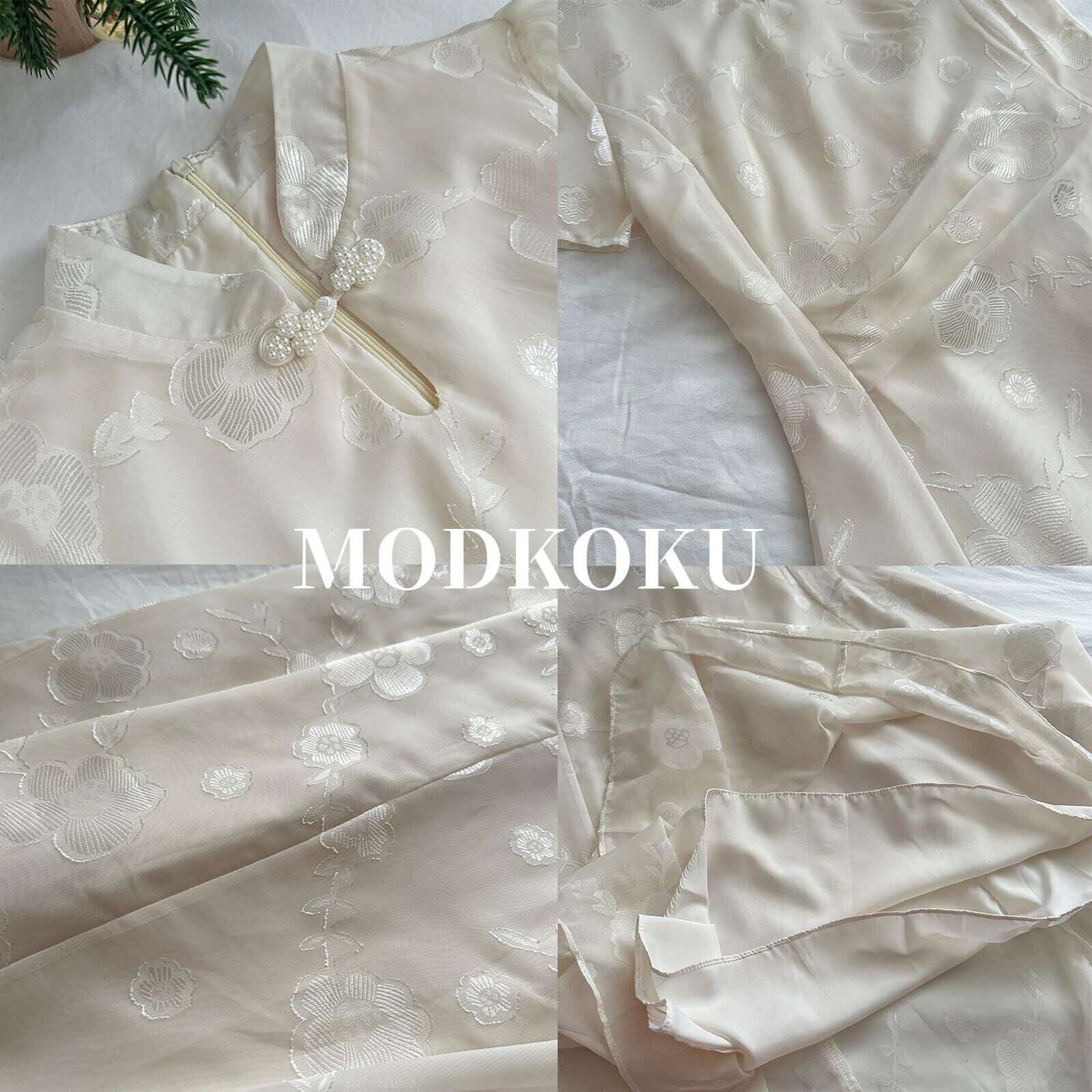 【新着商品】[MODKOKU] チャイナドレス ワンピース レディース チャイナボタン 花柄 刺繍 Aライン 大人 結婚式 女性らしい エレガント フレンチ 森ガール 着痩せ 立ち襟 シフォン ハイウエスト きれいめ 甘い セクシー 女子会 半袖 春 夏 服
