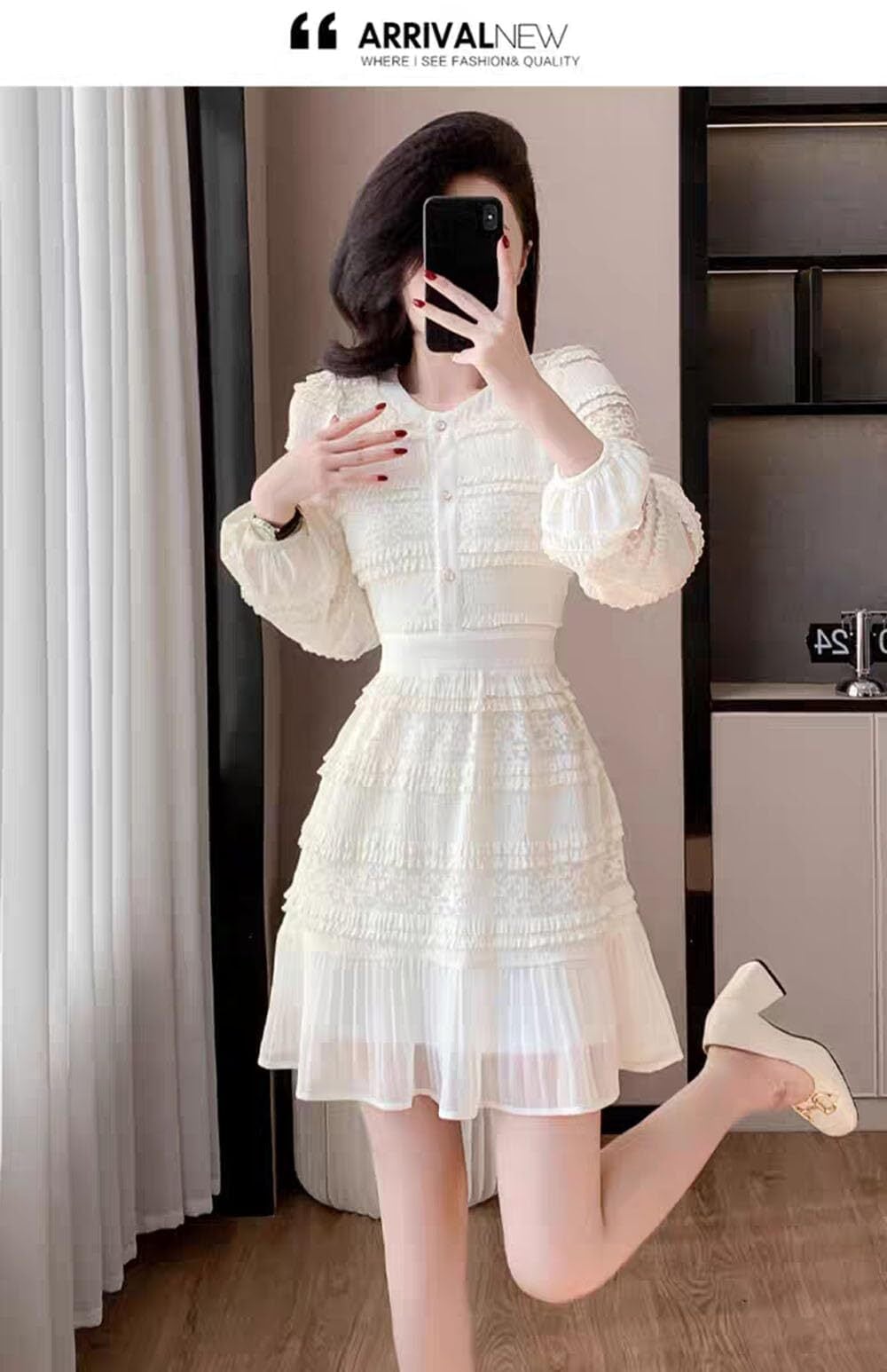 このワンピースはシンプルながらも存在感があり、多くのコーディネートが可能です。ヒールやサンダルと合わせたり、ジャケットやカーディガンを羽織ることで、春や秋のイベントにも完璧にマッチします。特別な日には、思い出に残るスタイルを演出できること間違いなし!