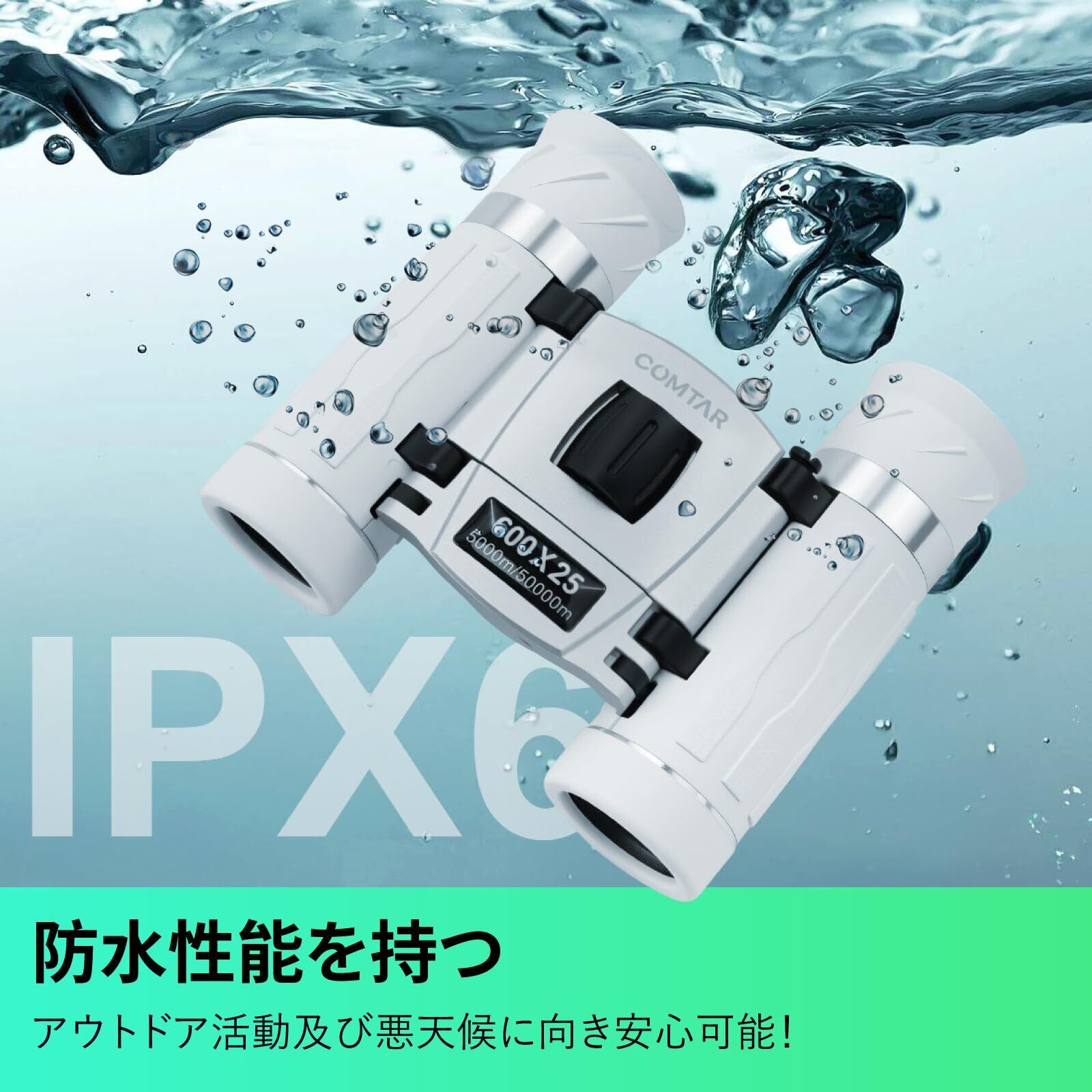 【生活防水&簡単操作で誰でも快適に使用可能】IPX5生活防水仕様で、雨や雪でも安心。目幅32~75mmの広い調整幅で、女性や子供にもフィット。たった3つのステップで臨場感あふれる視界を楽しめます。①目幅を調整 → ②ピントリングを調整 → ③視度調整リングを回す。自分に合った目幅に調整でき、まつ毛の長い方でもストレスなく使用できます。