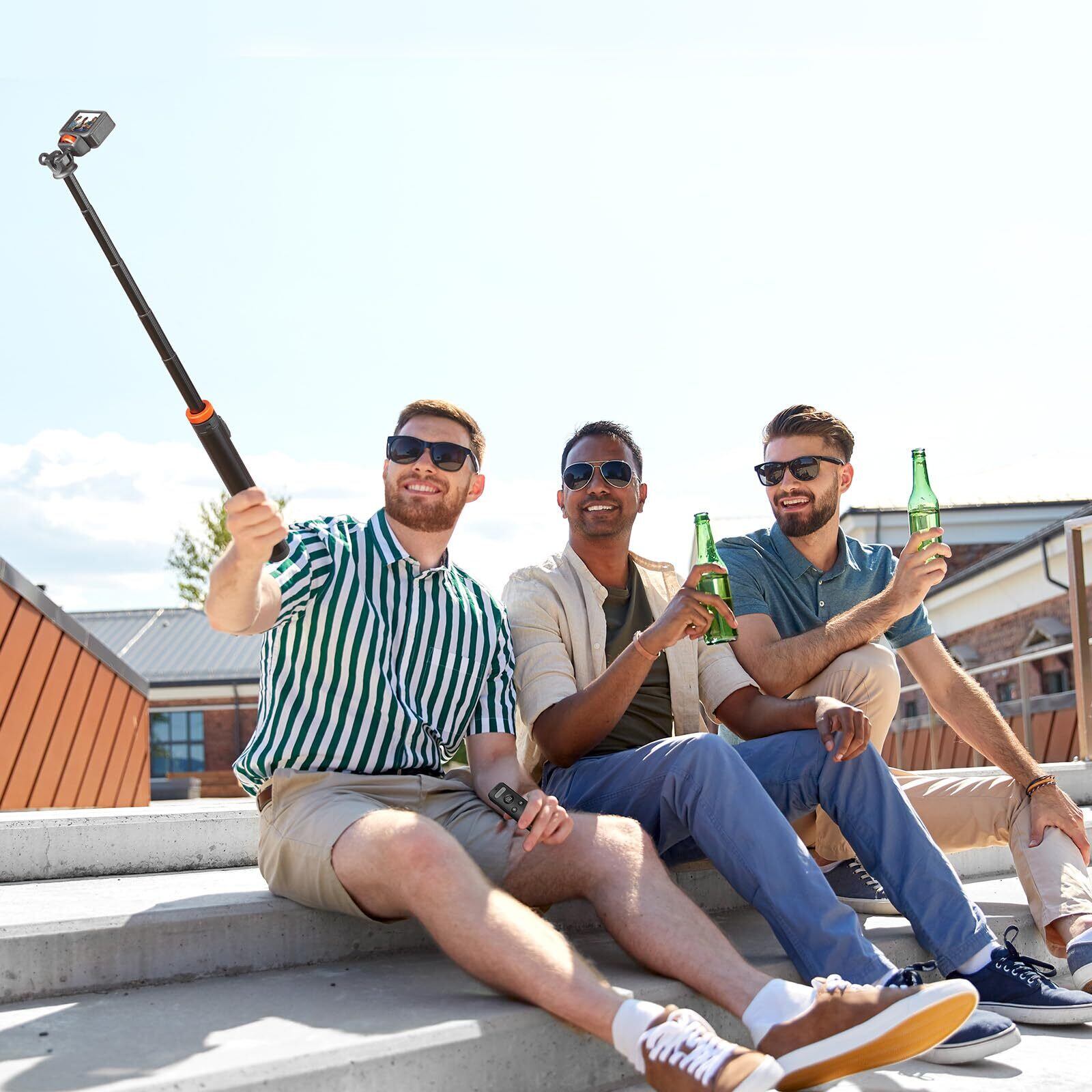 【Bluetooth 15m 遠隔安定操作】Bluetooth 5.0 チップ搭載のカメラ Bluetooth リモコンで、無遮蔽環境下 15m まで安定伝送。遠隔で撮影、スリープ、モード切り替え等の核心機能を制御可能,セルフィー、VLOG 録画、バイク等のシーンに最適。