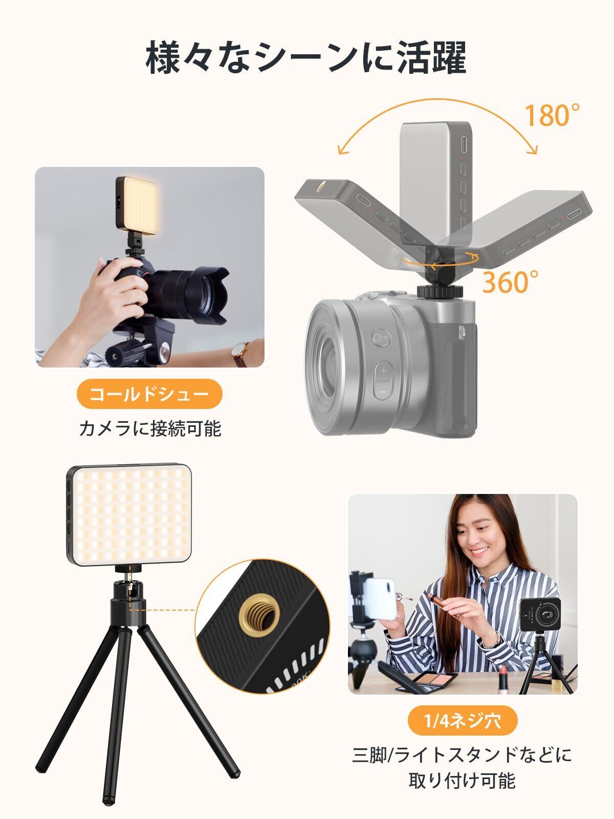 【素晴らしい補光効果】XJ77には128個のLEDビーズを搭載しており、非常に明るい輝度に達します。均一な発光で、影がありません。CRI90+の高演色性と3000k-6500kの色温度により、いろいろな照明ニードに対応して、撮影用ライトとして最適です。