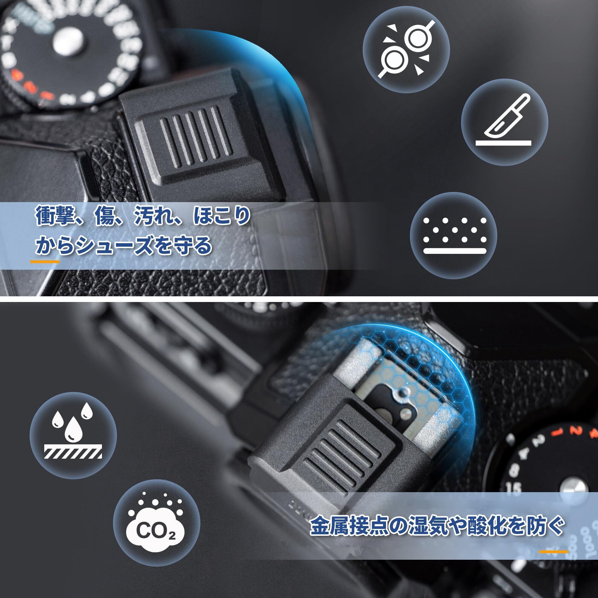 【ホットシュー保護】ホットシューへの衝撃、傷、汚れ、ほこりなどを軽減し、ホットシュー内部の金属接点を湿気による酸化から保護します。