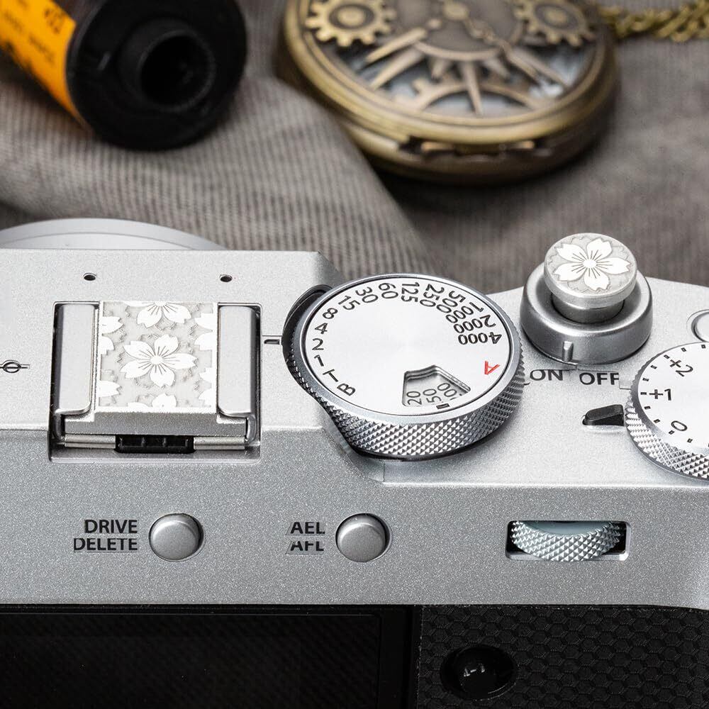 メタル ホットシューカバー シャッターボタン 富士XT 10/X 100 F/X 100 V/X 100 VI/XE 4/XPRO 3/XPRO 2 Nikon汎用性のあるホットブーツカバーに適しています (Silver Flower Set)