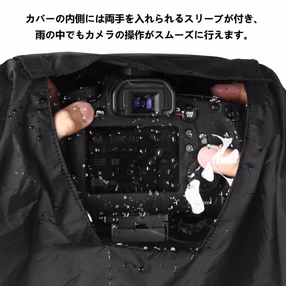 高品質な防水素材を使い、雨だけでなく、埃や泥からもしっかりとカメラを守ります。サイズが適応しており、一眼レフやミラーレスカメラにも最適で、様々な環境で安心してご使用いただけます。