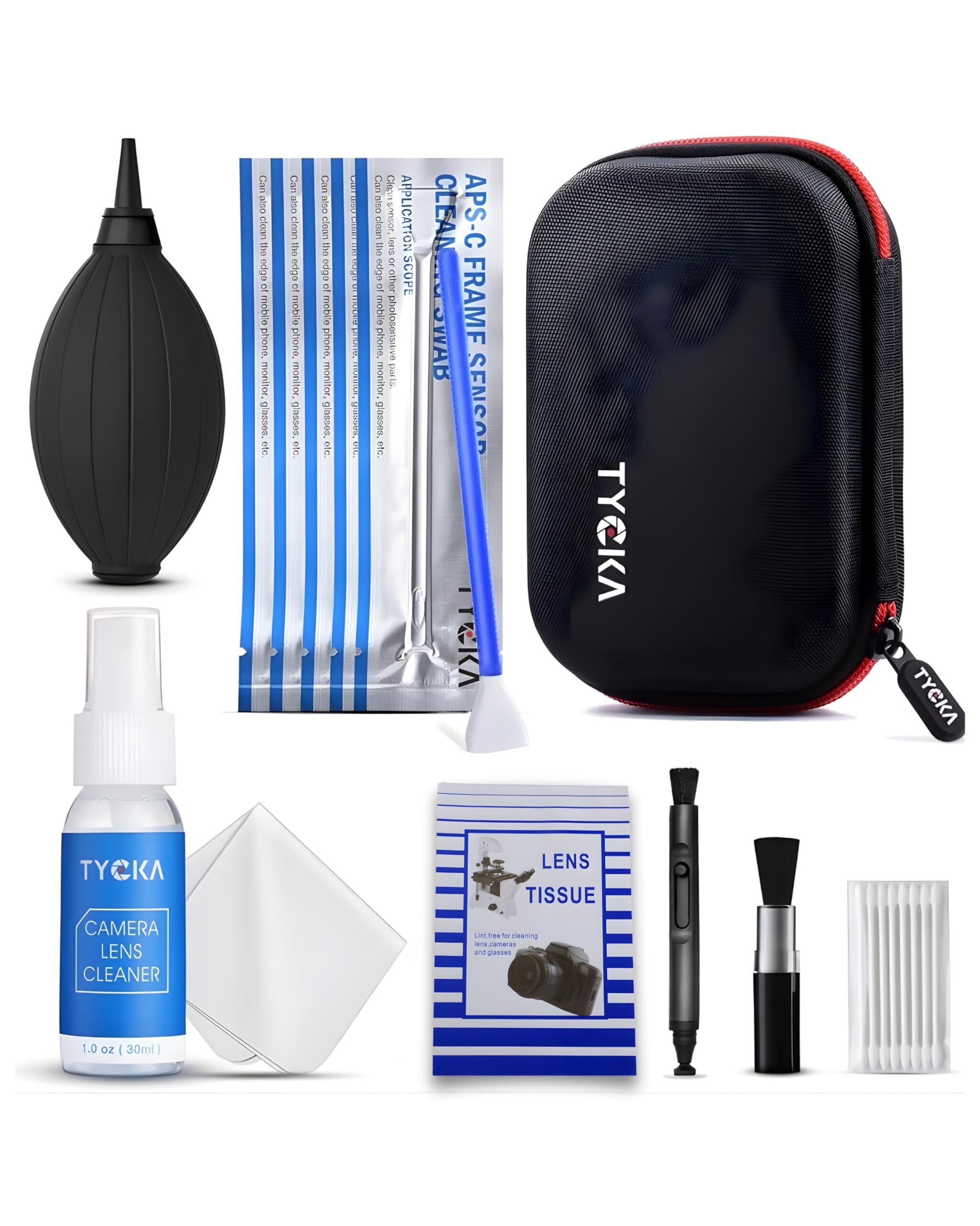 【クリーニングセット】30ml無毒性レンズ洗浄液x1、エアーブロワーx1、レンズクリーニングペンx1、クリーニングブラシx1、マイクロファイバークリーニングクロスx2、綿棒x8、センサークリーニングスワブx6 、50枚カメラクリーニングティッシュx1、防水ハードシェル保護ケースx1