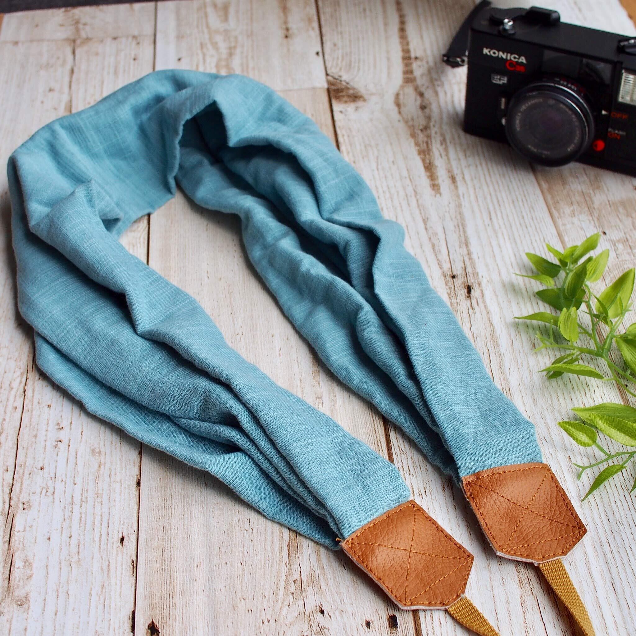 【新春セール】ダブルガーゼ 幅広 肩で支える 一眼レフカメラストラップ ミラーレス ハンドメイド ブルー