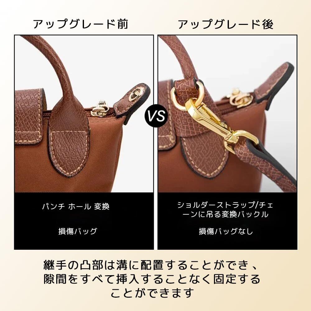 【ノーホール改造金具付き】特別設計の改造用金具(バックル2個付き)で、工具不要・穴あけ不要。バッグを傷つけずに簡単にショルダー ベルトを取り付けでき、手持ちバッグをショルダーバッグに変身させます。
