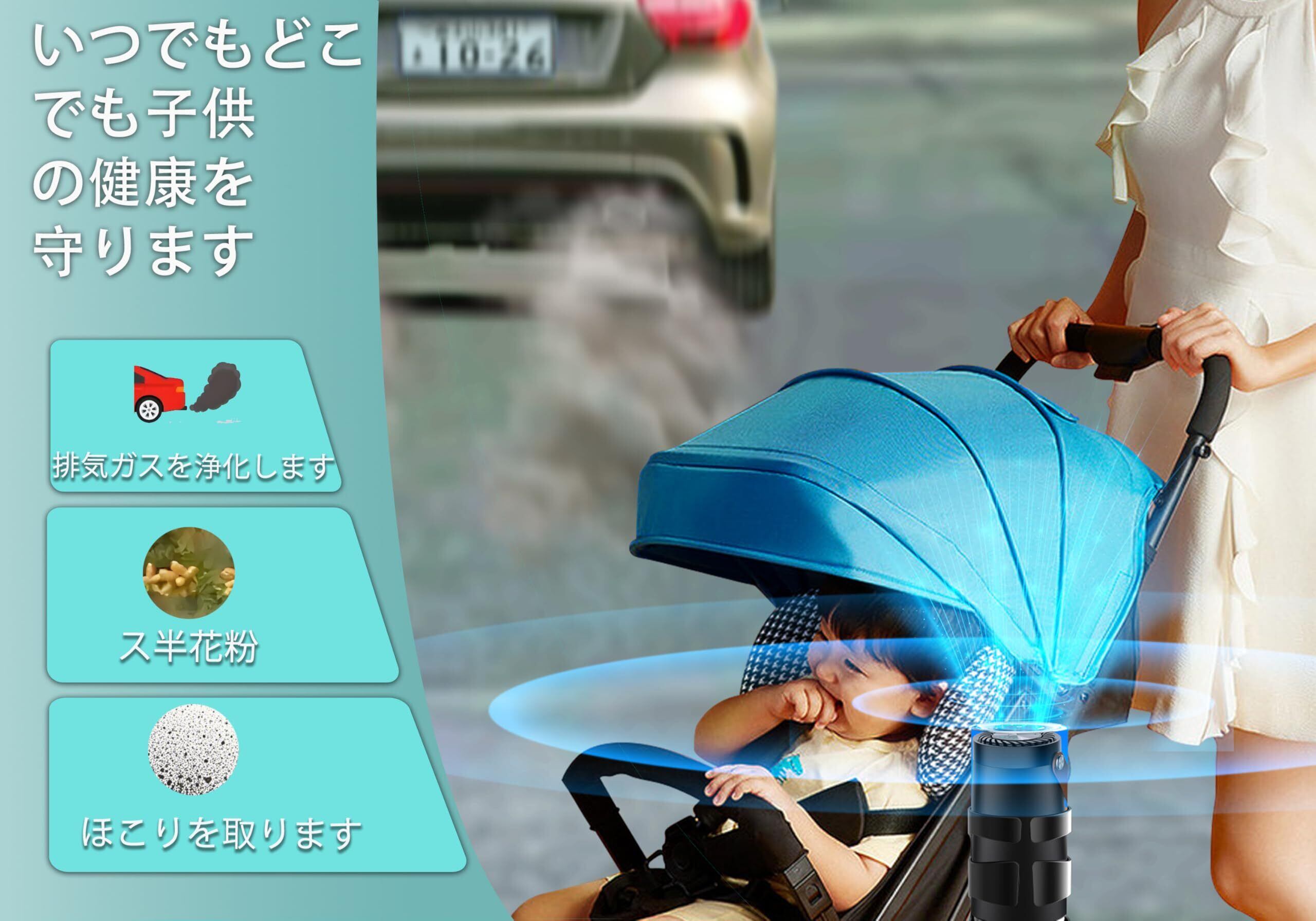 小型で軽量のデザインにより、家庭用はもちろん、卓上や旅行中でも活躍。車のシガーソケットに接続するだけで使え、簡単に移動できるため、どこでも清新な空気環境を手に入れることができます。