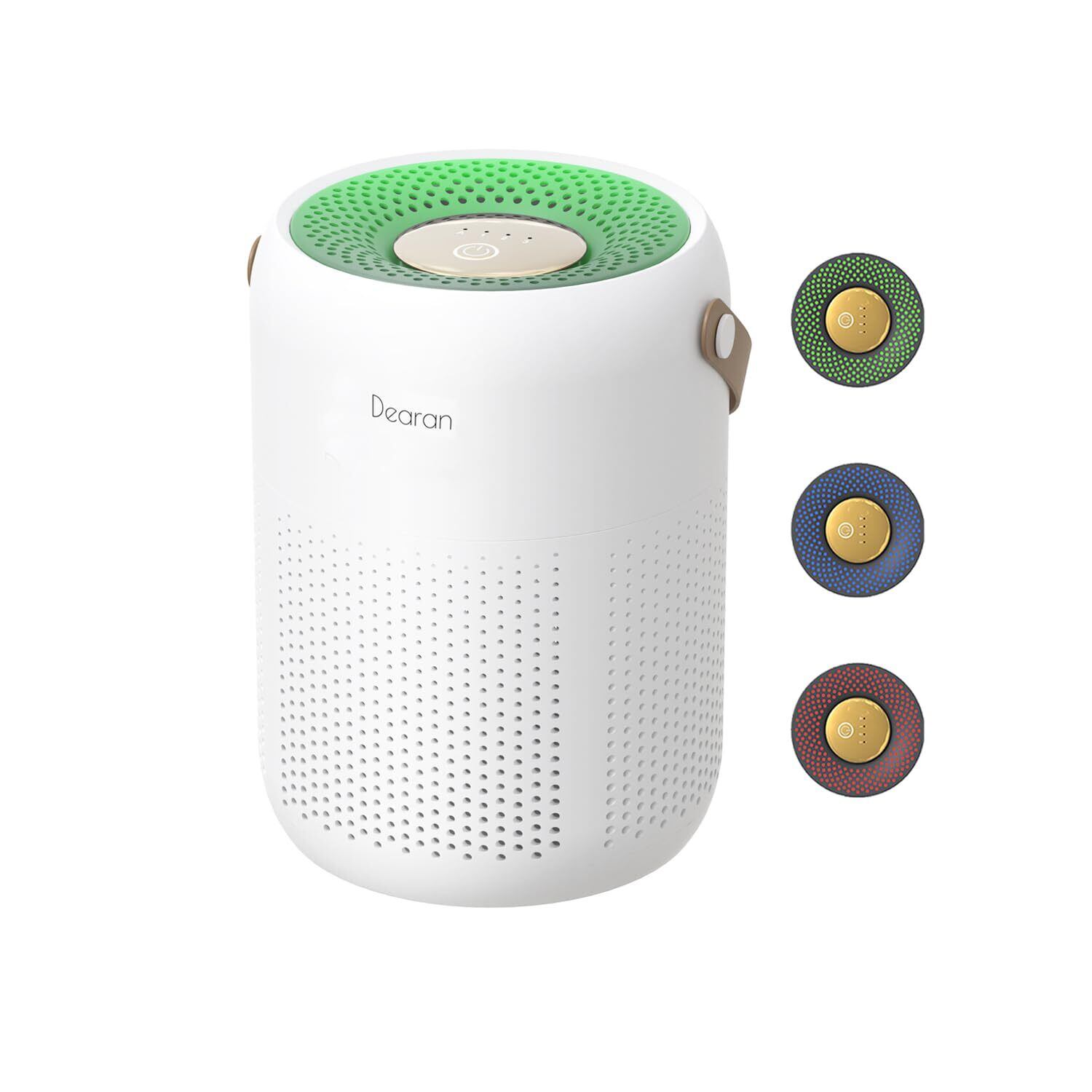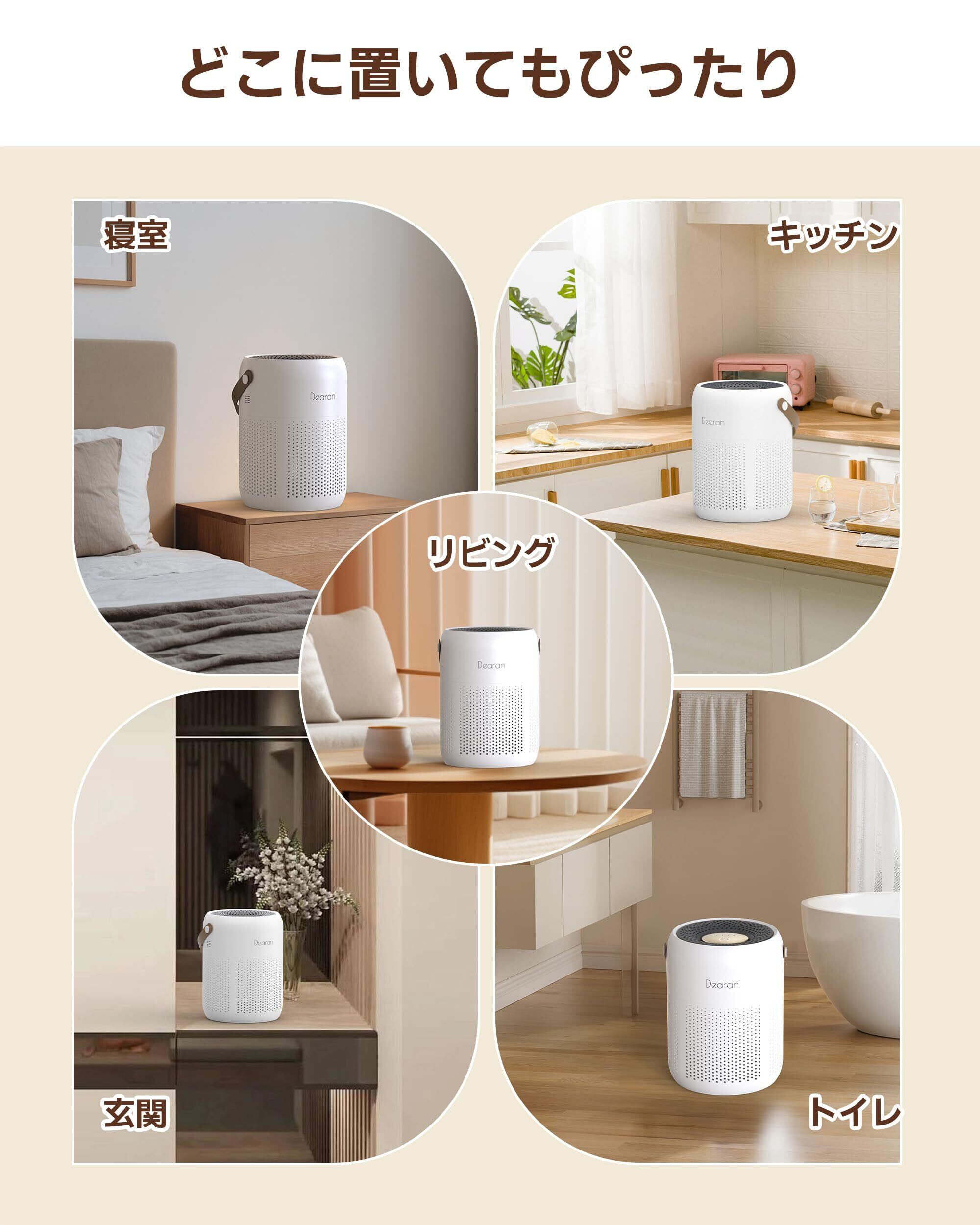 【自動空気質検知・簡単操作】 空気清浄機は空気品質インジケーターが搭載された、赤・青・緑の3色で空気の状態をリアルタイムに表示。赤は「悪い」、青は「やや悪い」、緑は「良い」を表し、一目で空気の状態を確認できます。ワンボタン操作で簡単に電源を切り替えられるため、誰でも手軽に使用可能。16×16.9×21cmのコンパクトサイズで、745gの軽量設計でコンパクトで持ち運びやすいなので、リビングや寝室、オフィスなど、さまざまなシーンで活躍します。