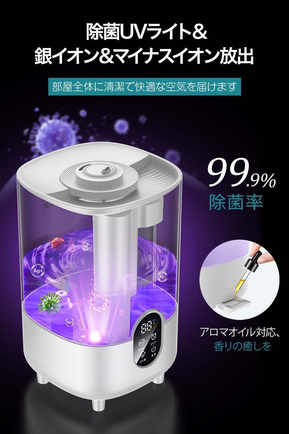 加湿器 大容量 4.5L 【2025冬新モデル・UVライト除菌・上から給水】 超音波式加湿器 卓上 アロマ対応 マイナスイオン機能搭載 ダブル噴霧口 6段階ミスト調整 4段階タイマー 静音設計 55時間連続運転 360°回転ノズル 空焚き防止 タッチパネル&リモコン付き 水漏れ防止 花粉&乾燥対策 次亜塩素酸水対応 加湿機 リビング・オフィス・家庭用・業務用