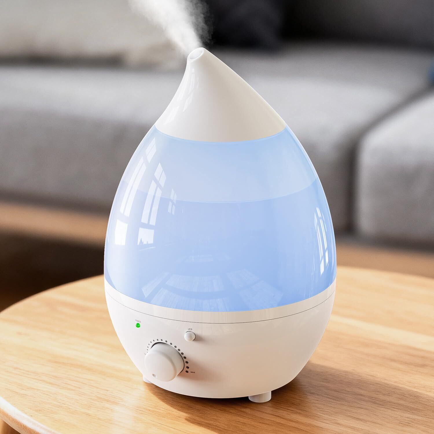 【無段階加湿量調節&1.8L大容量タンク】 本製品は加湿量を無段階で自由に調節できる設計で、季節や部屋の湿度、お好みに合わせて最適な湿度環境を簡単に整えられます。最大加湿量は350ml/hとパワフルで、リビングや寝室など広めの空間にも十分対応。1.8Lの大容量タンクを搭載しており、最大約12時間の連続加湿が可能です。頻繁に給水する必要がなく、忙しい日常でも手間をかけずに快適な湿度を保てます。