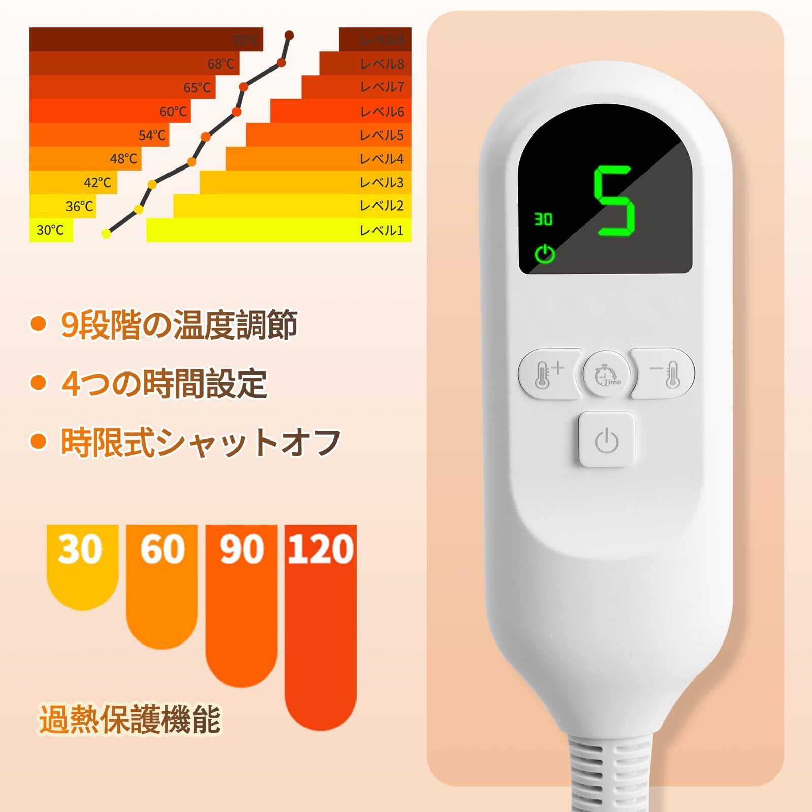 この商品は、4段階のオフタイマー機能を搭載しており、2時間、4時間、6時間、8時間から選ぶことが可能です。さらに、9段階の温度調整ができるため、あなたの好みにぴったり合わせた温かさを実現します。特に寒い日には、すぐに温まる速暖機能が嬉しいポイントです。
