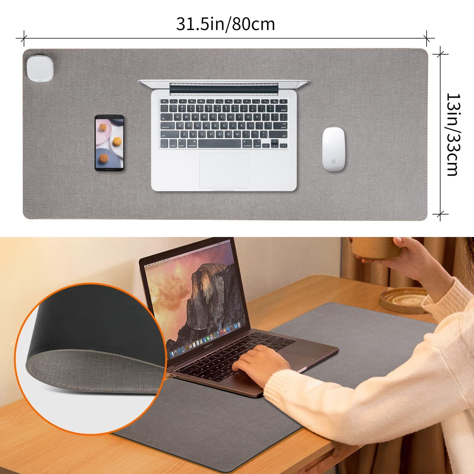【大型マウスパッド&超大発熱面積】80*33CMな大きいサイズで、両手をもっと自由に動かす。広い表面、マウス、キーボード、オフィスツール、その他のデスクアイテムに十分に収まります。また、96%の発熱面積、どこに触れてもぽかぽかです。読書、勉強、オフィス、手作り、ポーカーなどのための優れた環境を提供します。
