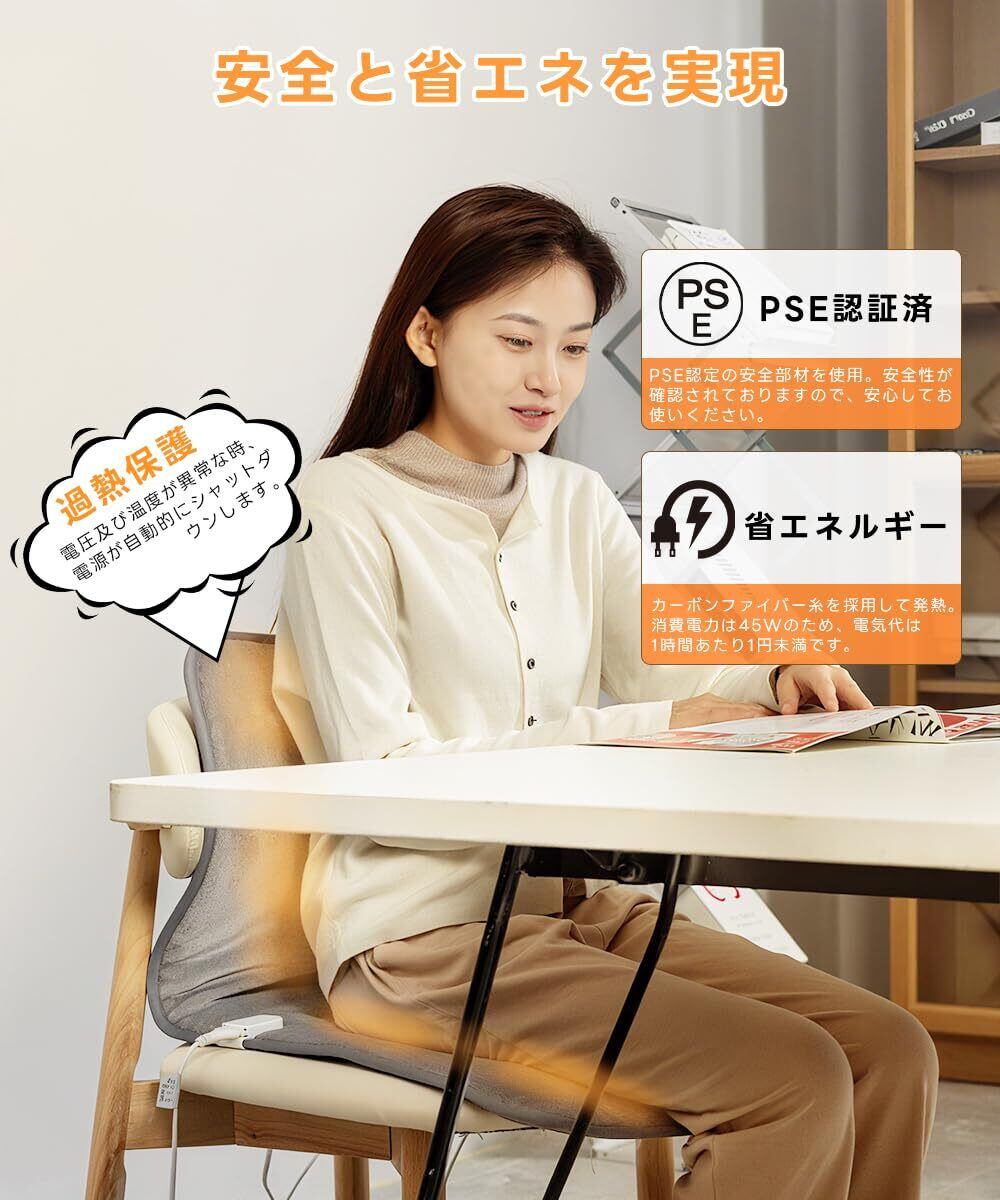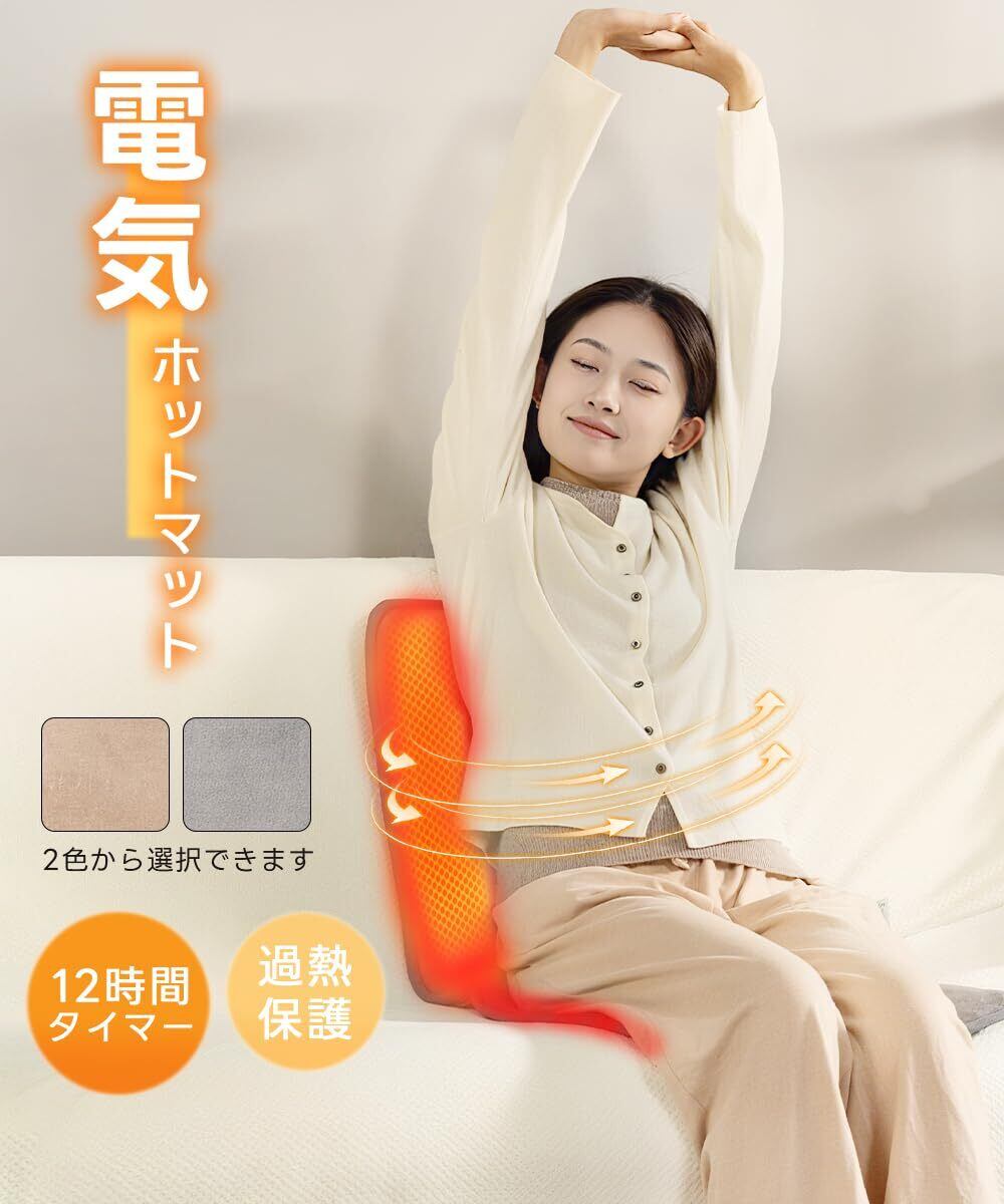 【新着商品】ホットマット 90×40cm 12時間タイマー機能付 6段階温度調節 電気マット ホットカーペット ミニ 一人用 電気座布団 フランネル仕上げ 炭素繊維発熱線 滑り防止加工 電気毛布椅子 自動オフ 洗える PSE認証済