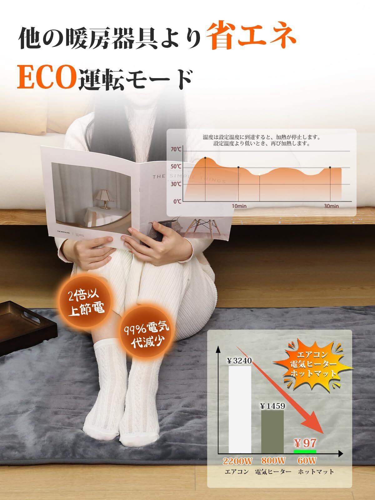 【省エネ・速暖の新世代ホットカーペット】(ほっとの温もり、家計にやさしい)この冬は、ほっこり温もりを。90Wの超低消費電力で、家計に優しい電気毛布敷き。わずか1時間あたり約0.9円の驚きの省エネ性能で、すぐにポカポカ。冷えやすい足元や腰を、素早くじんわり温めます。節約しながら、快適なぬくもりを。あなたの冬の健康習慣を、このエコで速暖なパッドがサポートします。9円の驚きの省エネ性能で、すぐにポカポカ。冷えやすい足元や腰を、素早くじんわり温めます。節約しながら、快適なぬくもりを。あなたの冬の健康習慣を、このエコで速暖なパッドがサポートします。